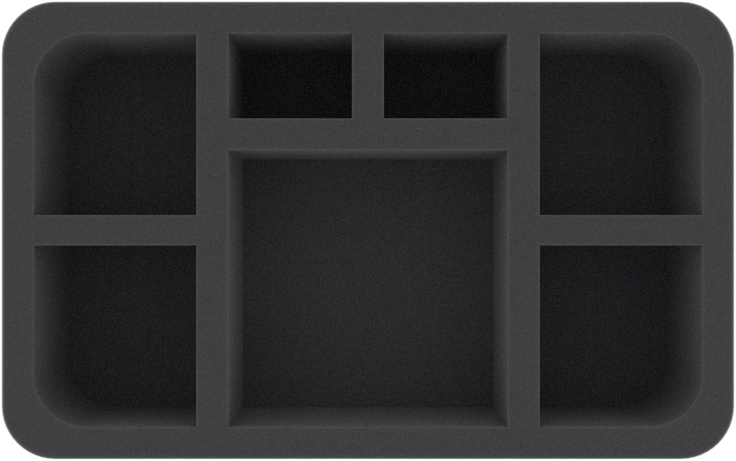 The Half-Size foam tray has the dimensions: 275 mm x 172 mm x 70 mm total height (60 mm usable height + 10 mm foam base).