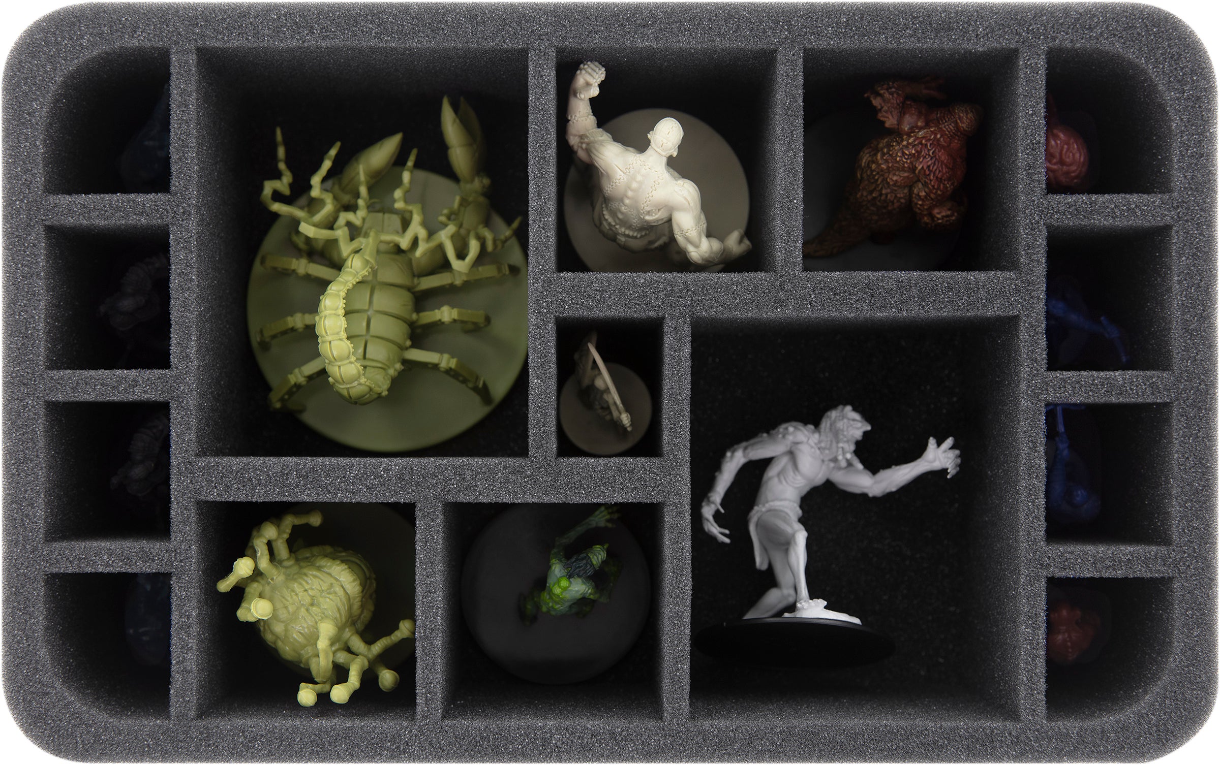 The insert is especially suitable for most WizKids D&D miniatures in the sizes Small, Medium, and Large. Of course the Dungeons and Dragons figures in 25/28 mm scale from other manufacturers (e.g. Reaper, GF9) are padded softly here as well.