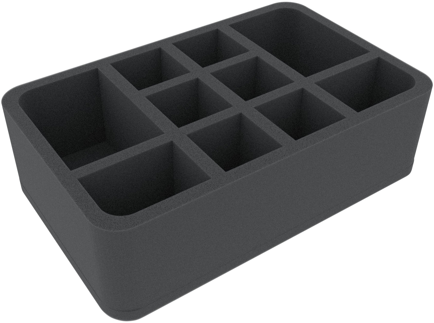 In this Feldherr Half-Size foam tray up to 10 miniatures of the Adeptus Custodes find a safe place. The different sized compartments are ideal for keeping both medium and standard sized models neatly organized and well protected.
