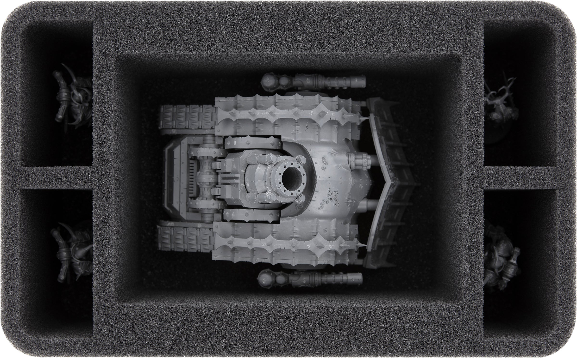 But even a siege tank equipped with ram blades and massive plates like the Plagueburst Crawler has some vulnerable elements beyond the battlefield. That's why we have this matching Feldherr foam tray to protect your miniature.