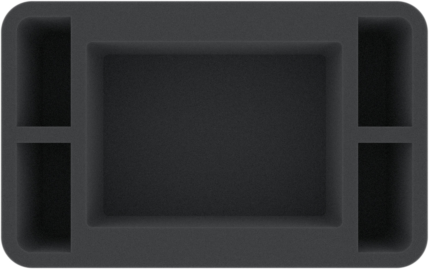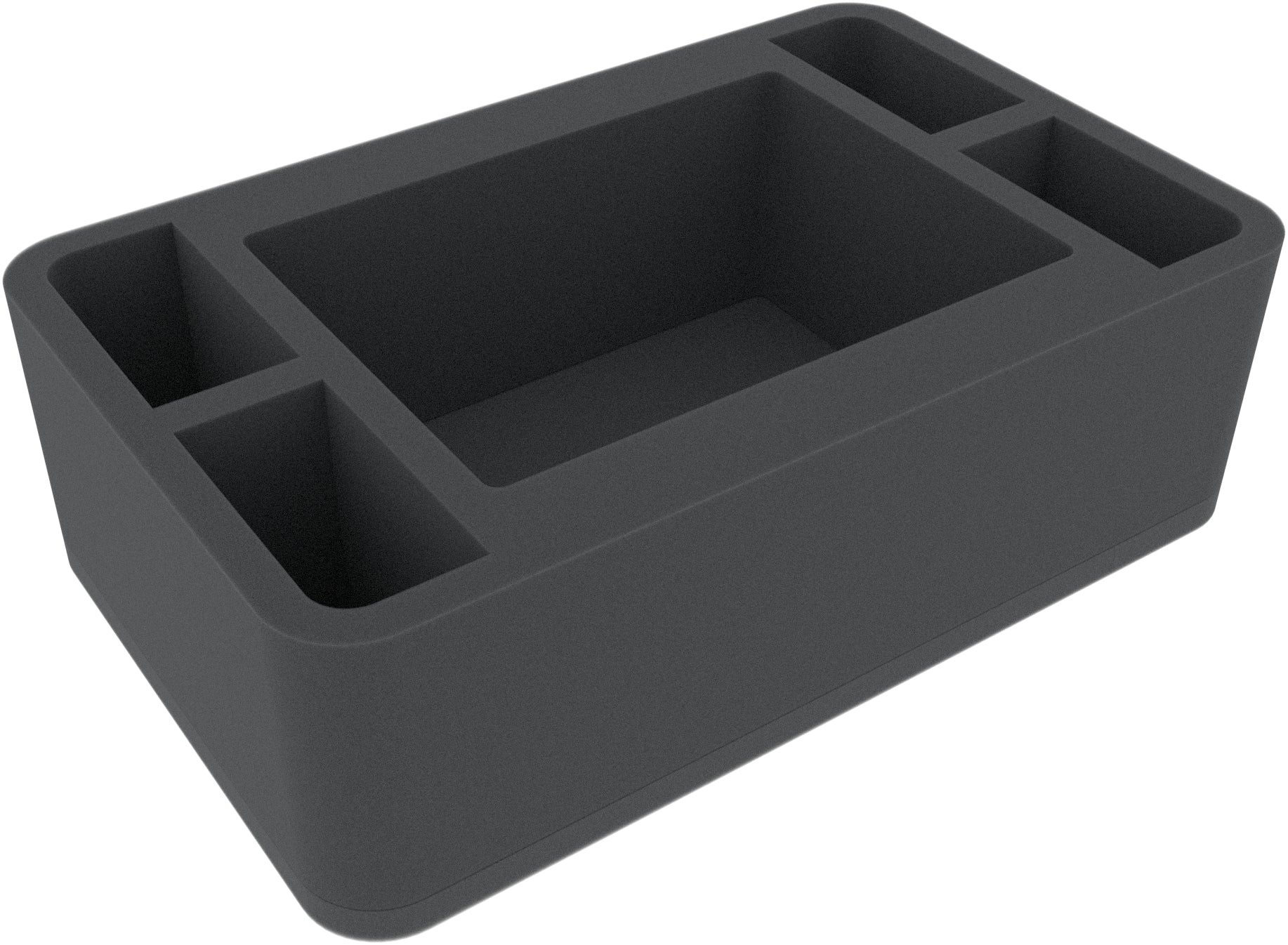 The Half-Size foam tray has the dimensions: 275 mm x 172 mm x 85 mm total height (75 mm usable height + 10 mm foam base).