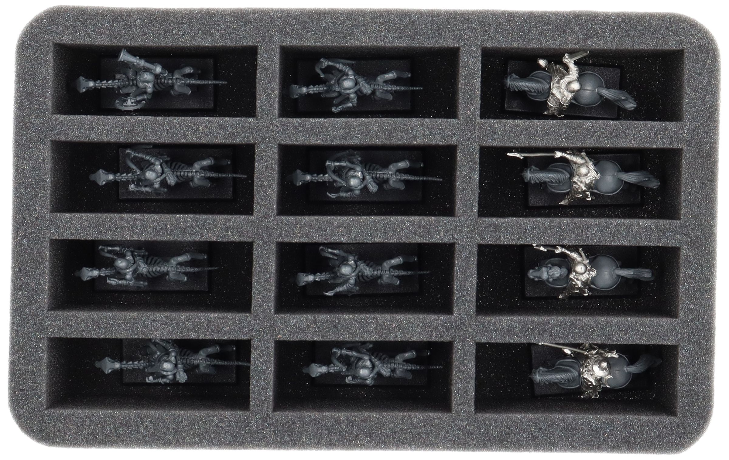 The Feldherr Half-Size foam tray provides space for up to 12 miniatures of your army. Ideal for cavalry units like Skeleton Horsemen (without banner bearer) and Horse Archers or models of similar dimensions.