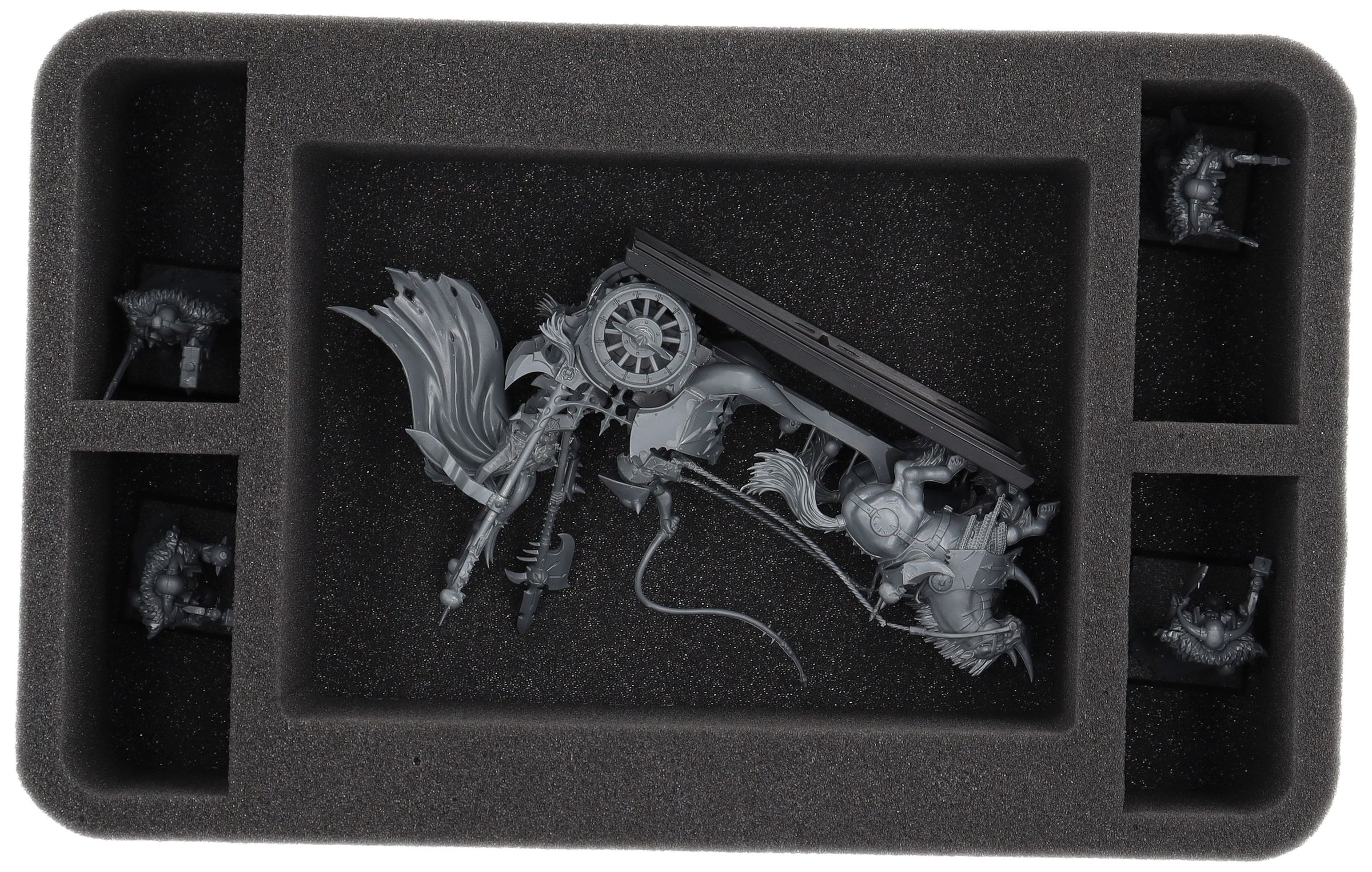 On this Feldherr foam tray you have space for up to 5 miniatures of your army. The insert is especially suitable for storing the Chaos Chariots and similar sized models.