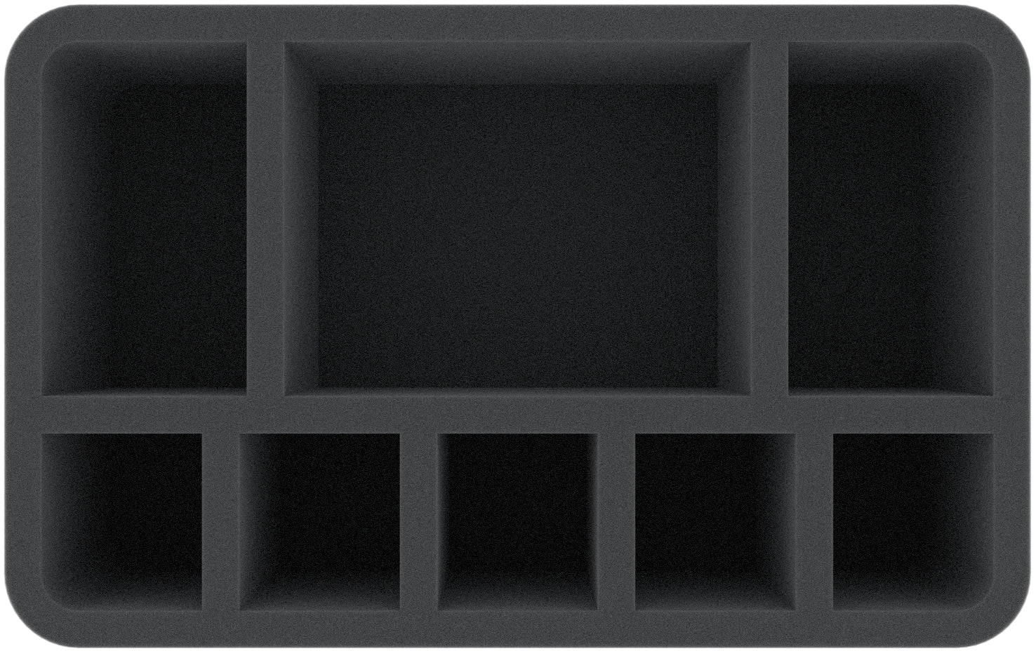 On this Feldherr foam tray you have space for up to 8 miniatures of your army. The big compartment is especially suitable for storing the Chaos Chariot, Gorebeast Chariot. Your Lord on Daemonic Mount finds his place in the medium sized compartments. The small compartments are suitable for Chaos Marauder Horsemen, Chaos Spawns and similar sized models.
