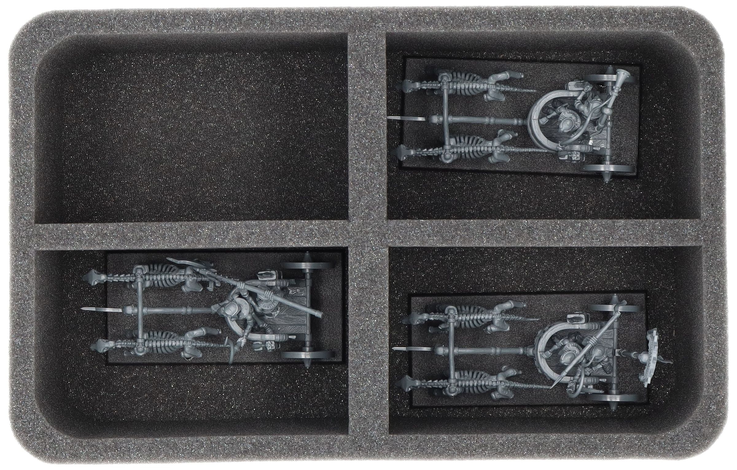 This 100 mm high foam tray is divided into 4 compartments. The foam tray is ideal for expansive models like skeleton chariots.