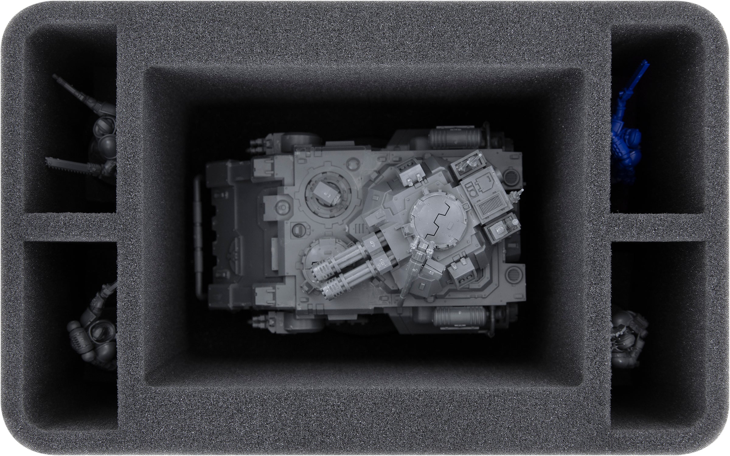 The four remaining compartments provide space for smaller figures like Primaris Hellblaster on 32 mm bases.