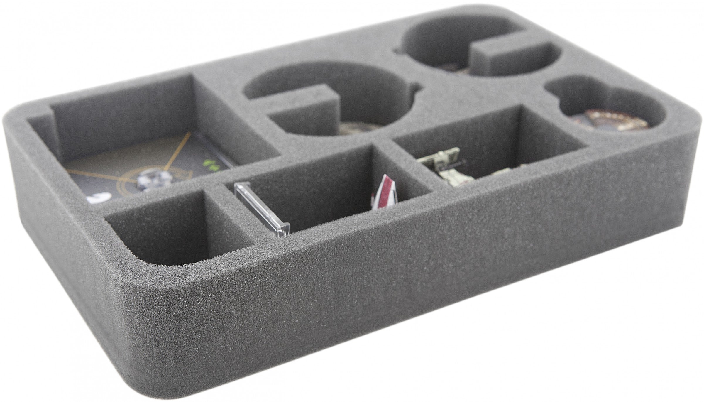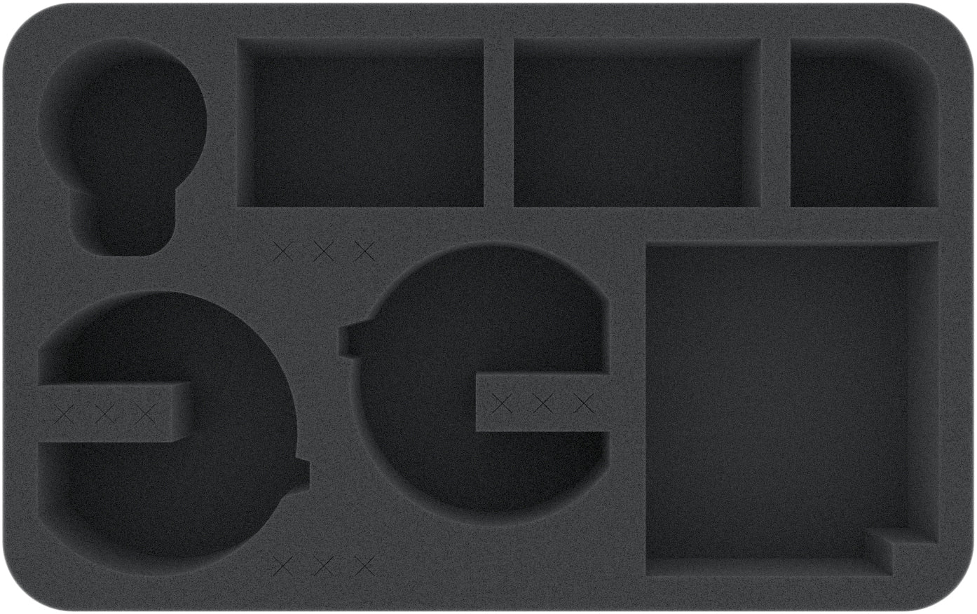 Esta bandeja de espuma Feldherr Half-Size fue especialmente diseñada para el Star Wars X-Wing Punishing One. Puede almacenar y transportar de forma segura hasta dos modelos del JumpMaster 5000. Además, puedes montar hasta tres púgiles y los accesorios. Los soportes de la base se pueden hundir en las ranuras transversales designadas.