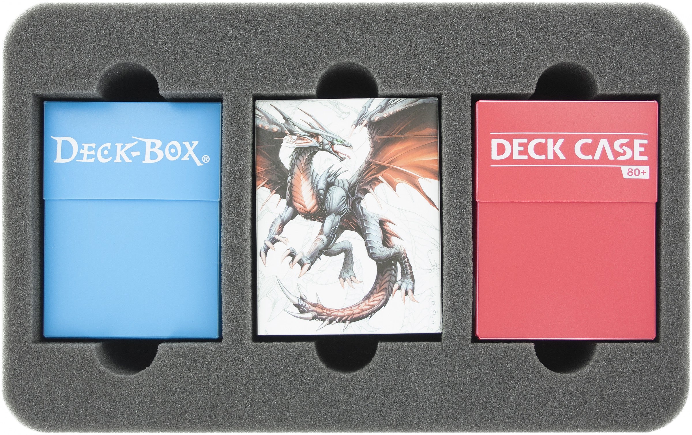 The Feldherr foam tray with 3 compartments for (sleeved) game cards in Standard Game Size and for deck boxes.