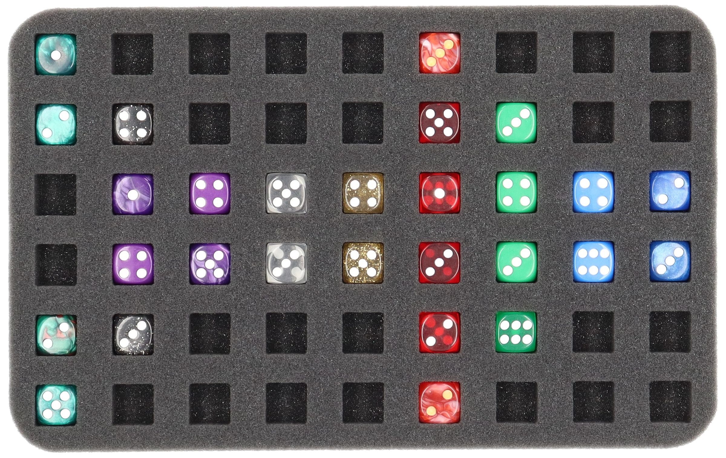 Foam tray with 54 cut-outs (16,5 mm x 16,5 mm).