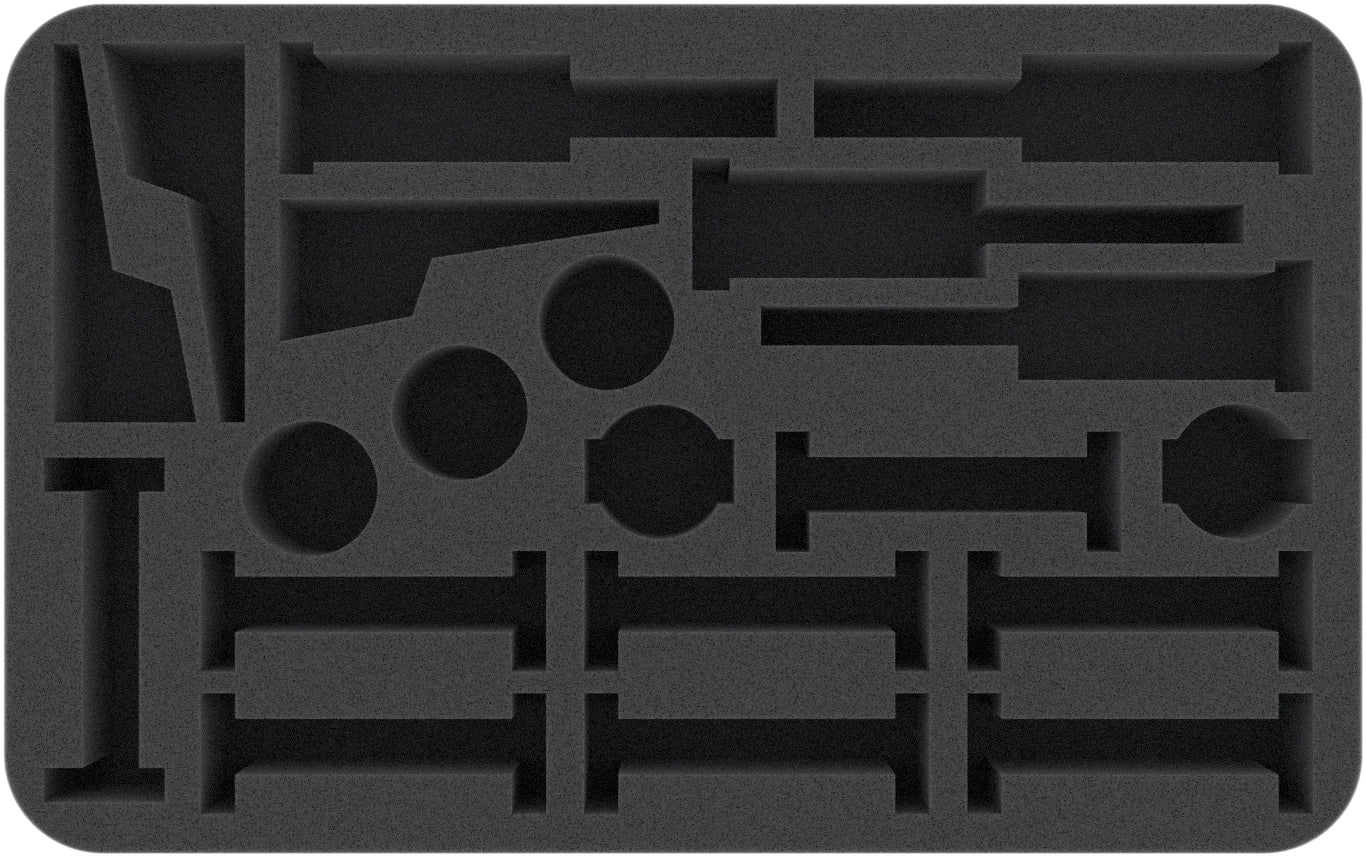 With this Half-Size foam tray, all 12 objective miniatures can be stored safely and neatly. In 12 miniature-precise cut compartments, the antennas of the comms stations and moisture vaporators are well protected against bending. The miniatures are also prevented from slipping around, so that painted objects are spared from scratches and chipped colors.