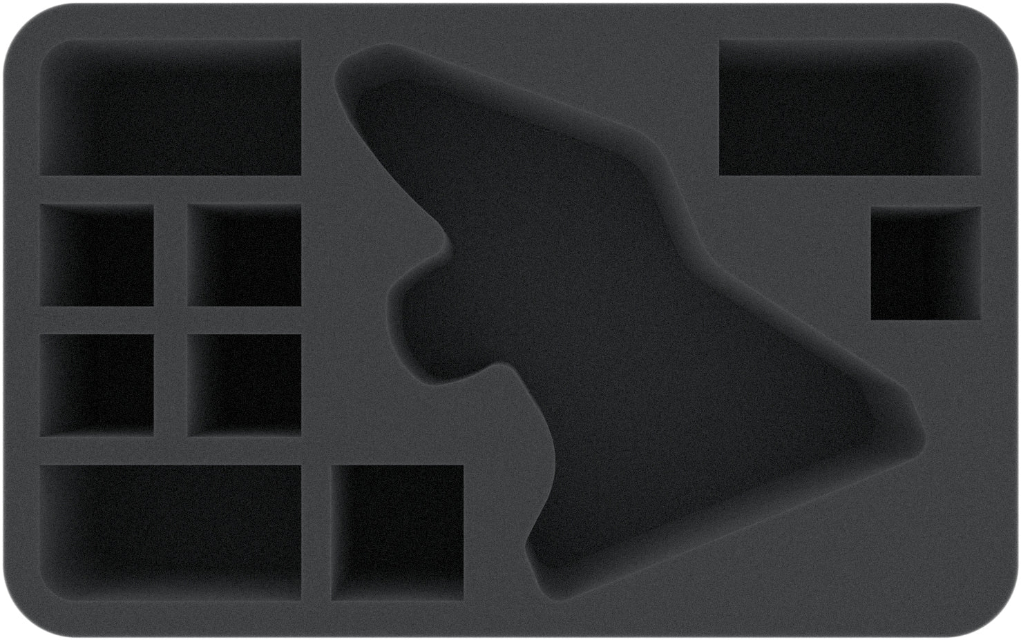 The large compartment on this Half-Size foam insert is precisely tailored to the walker model of the Adeptus Mechanicus. Thanks to the precisely fitting cut, the miniature remains securely in place on its way to the game table. Filigree parts such as cognis autocannon, data collection modules, and antennae are optimally protected from damage by the soft foam.