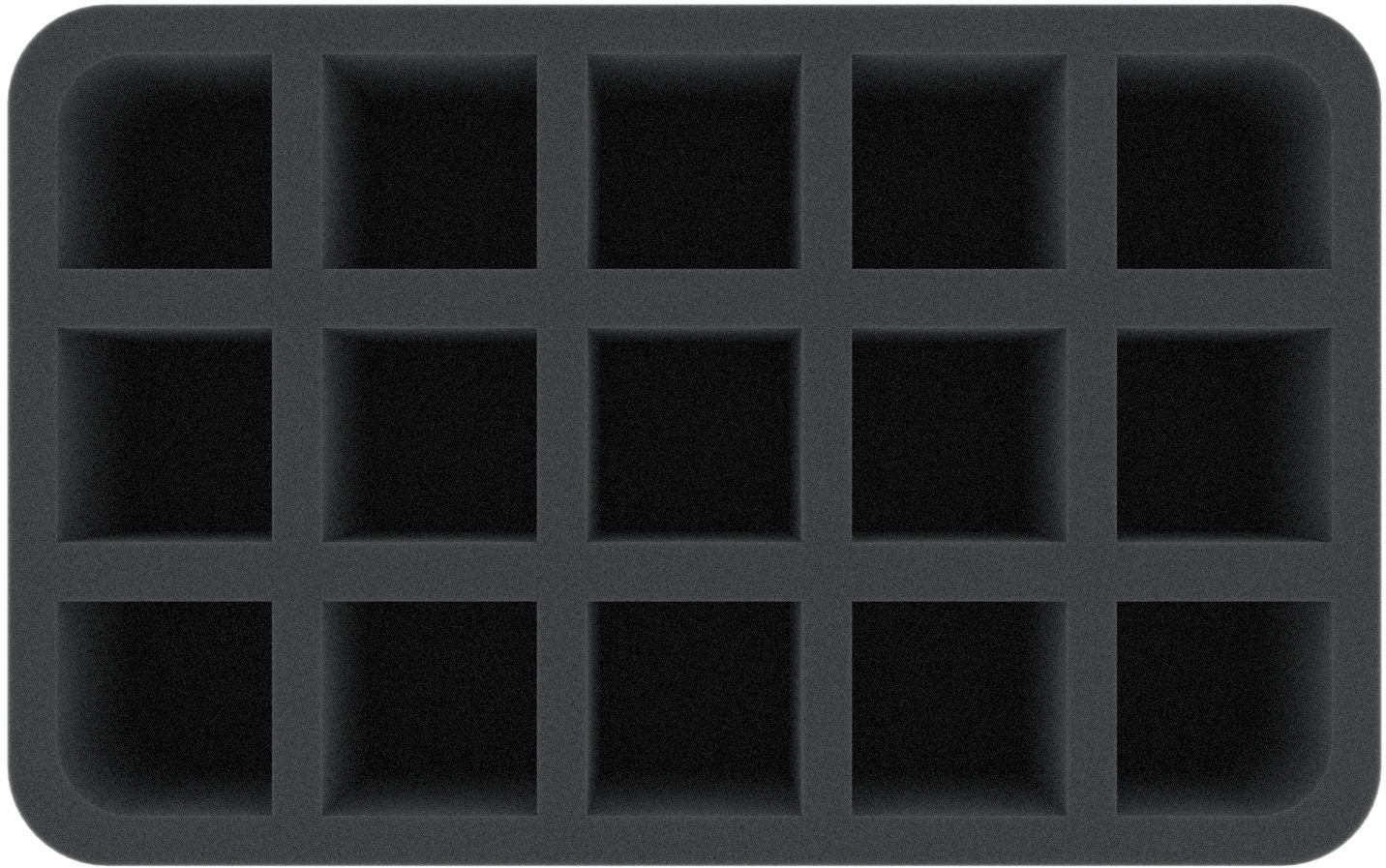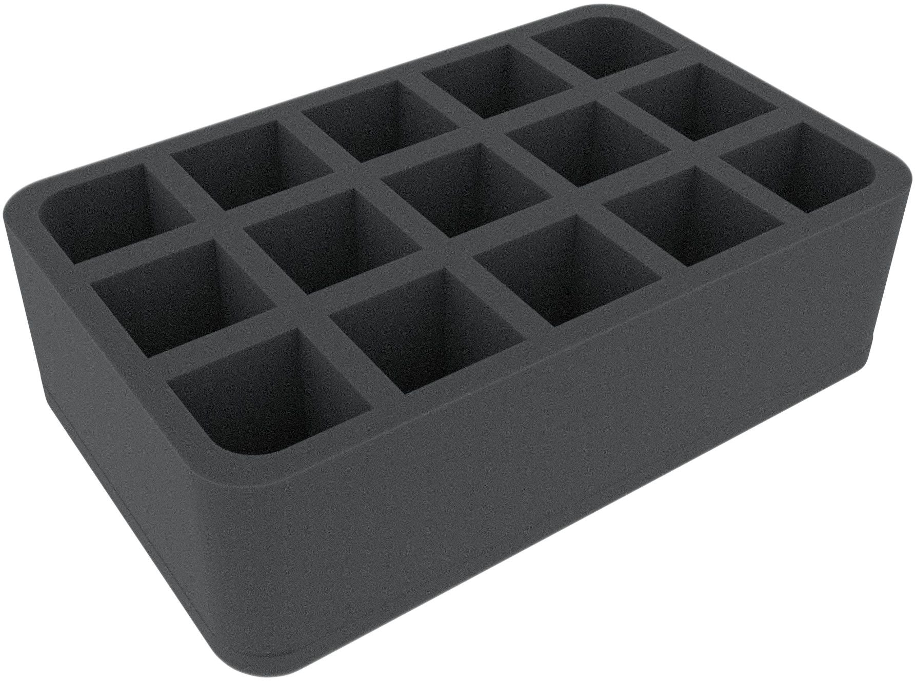 This 80 mm high foam tray is divided into 15 compartments. It is particularly suitable for the safe storage of tabletop and board game miniatures, as well as other fragile models and small parts.