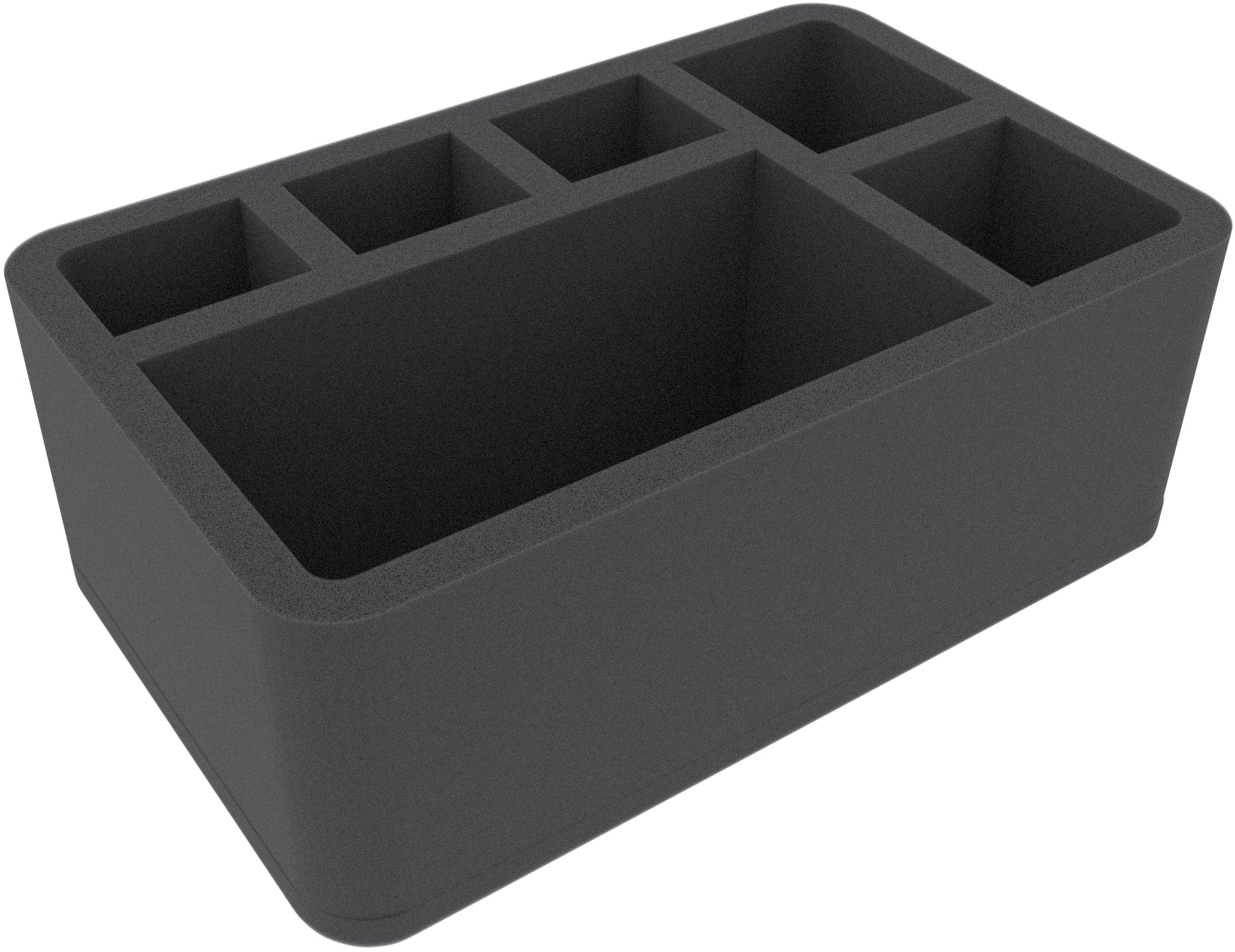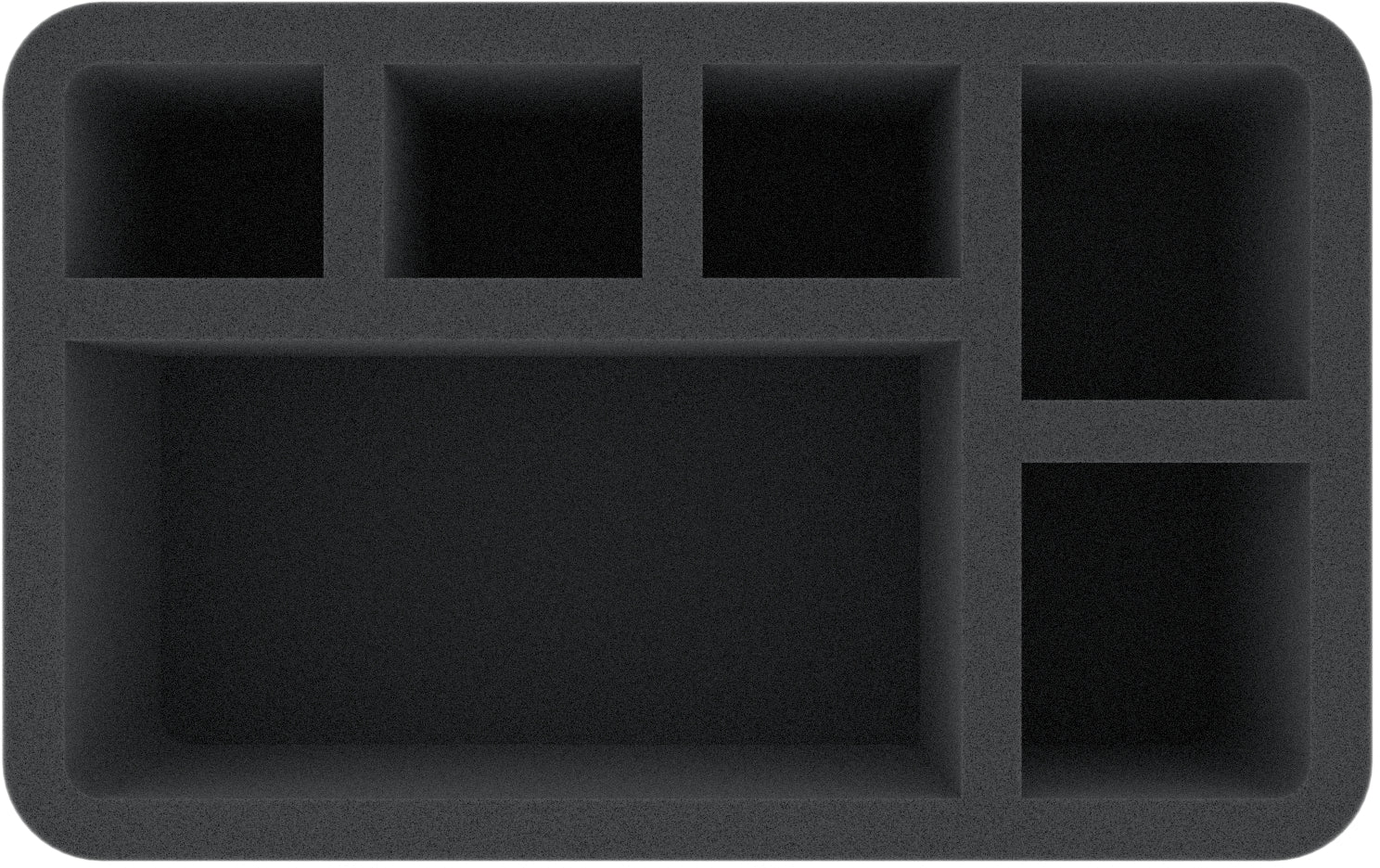 This 100 mm high foam tray is divided into 6 compartments. It is particularly suitable for the safe storage of tabletop and board game miniatures, as well as other fragile models and small parts.