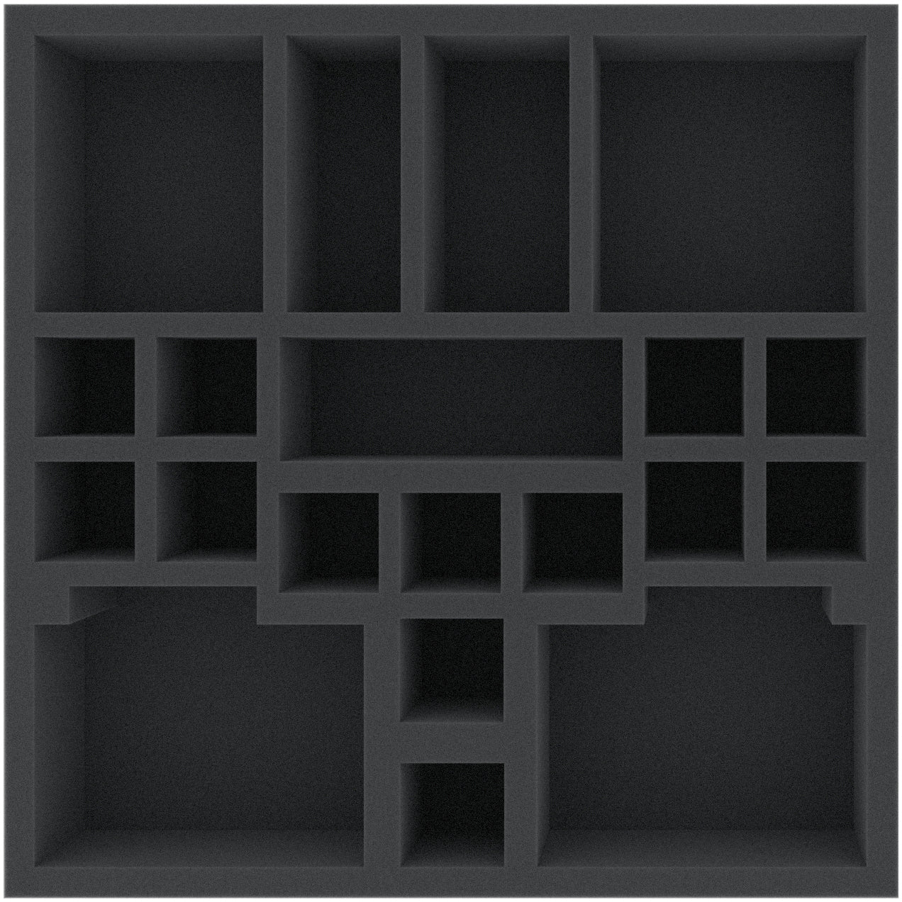 This 55 mm high foam tray is divided into 20 compartments. It is particularly suitable for the safe storage of tabletop and board game miniatures, as well as other fragile models and small parts.