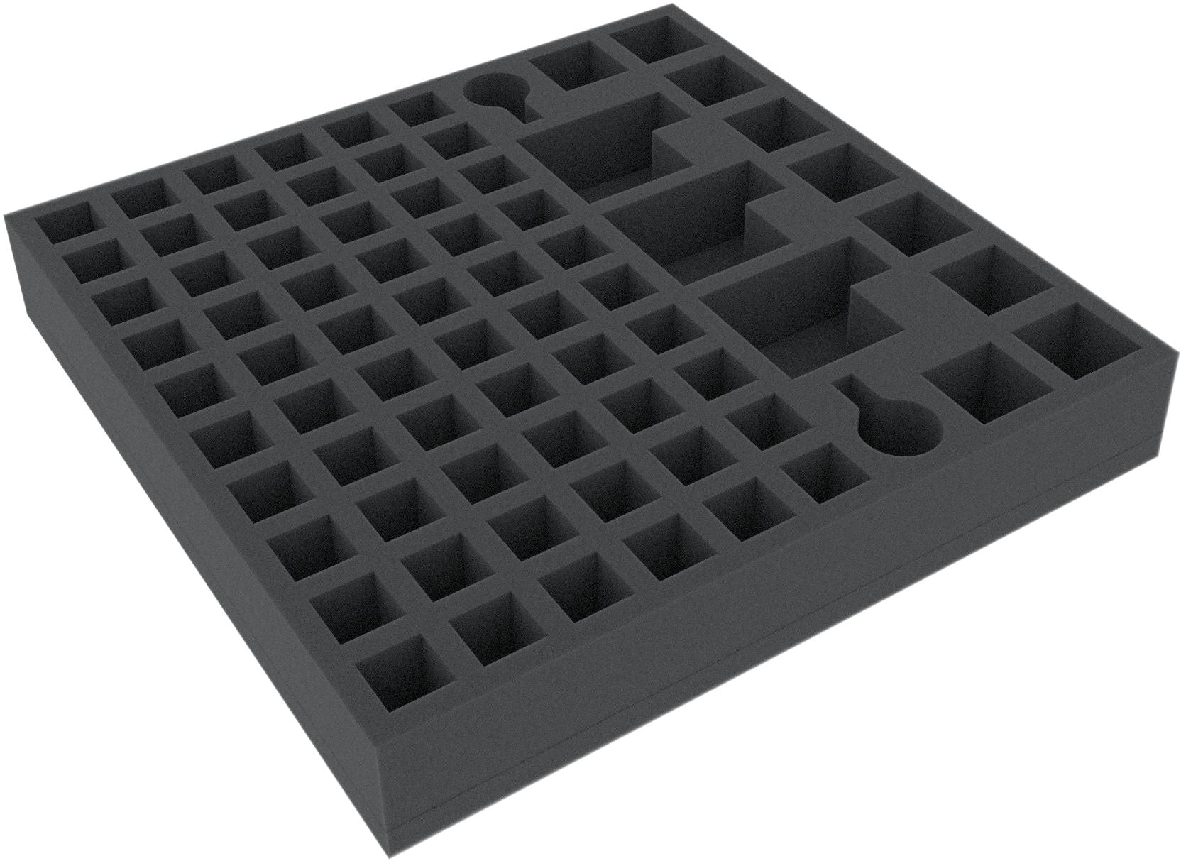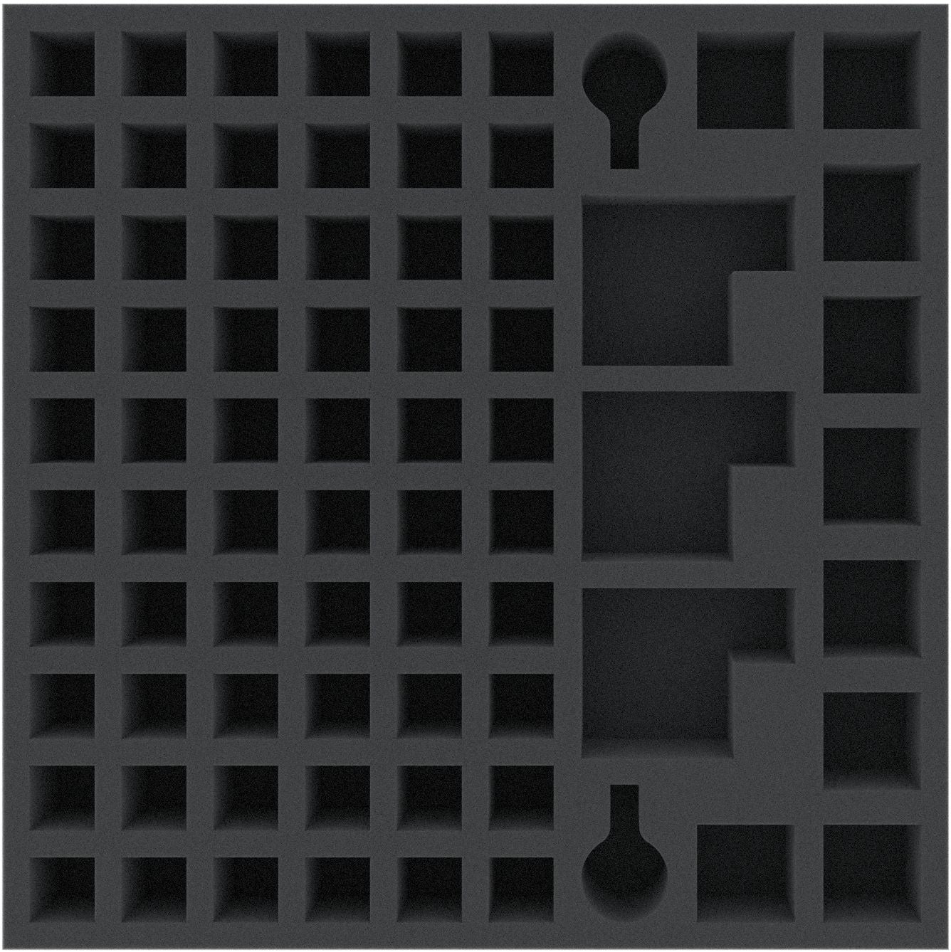 This 40 mm high foam tray is divided into 74 compartments. It is particularly suitable for the safe storage of tabletop and board game miniatures, as well as other fragile models and small parts.