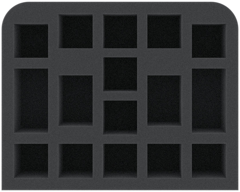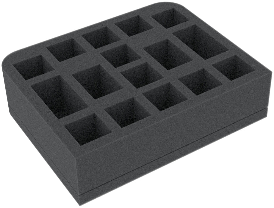 This 45 mm high foam tray is divided into 16 compartments. It is particularly suitable for the safe storage of tabletop and board game miniatures, as well as other fragile models and small parts.