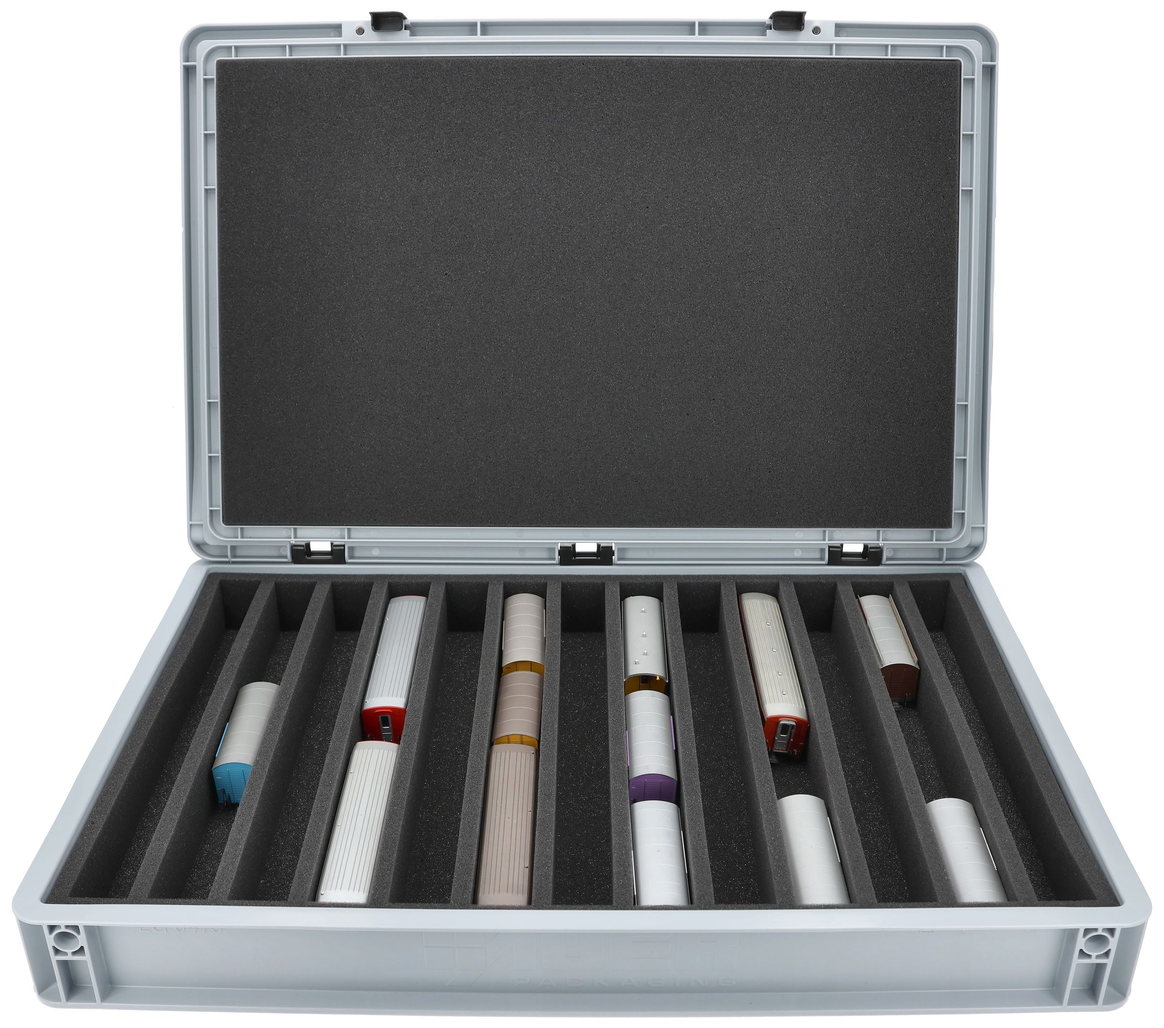 Para todo aquel que desee transportar sus locomotoras, vagones y vehículos a escala H0m de forma segura y compacta: este set de Feldherr combina una Eurobox apilable con un inserto de espuma a medida. Ya sea para reuniones de club, exposiciones o para ahorrar espacio en casa, sus modelos estarán siempre bien protegidos.
