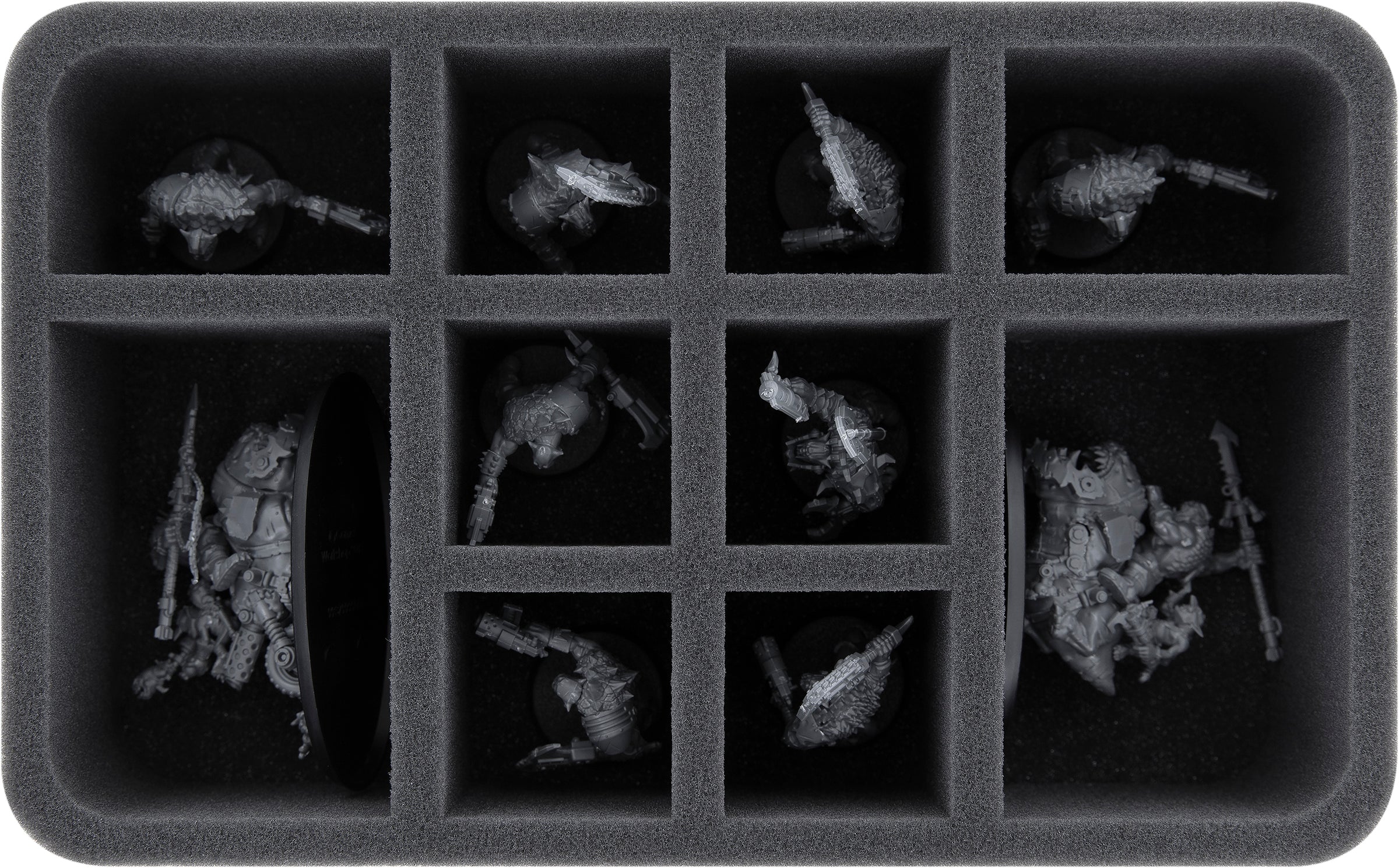 • 1 bandeja de espuma Half-Size con 10 compartimentos para el Jefe de Guerra con Megaarmadura, Ork Beast Snagga Boyz, Squighog Boyz (HS070A036)