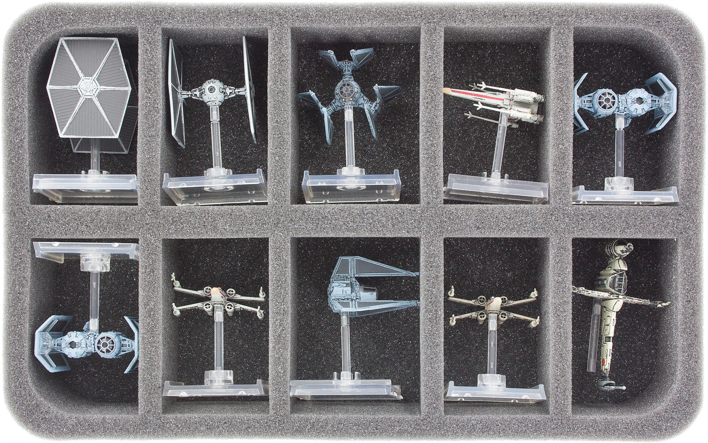 - 1 bandeja de espuma de 50 mm para 10 buques X-Wing.