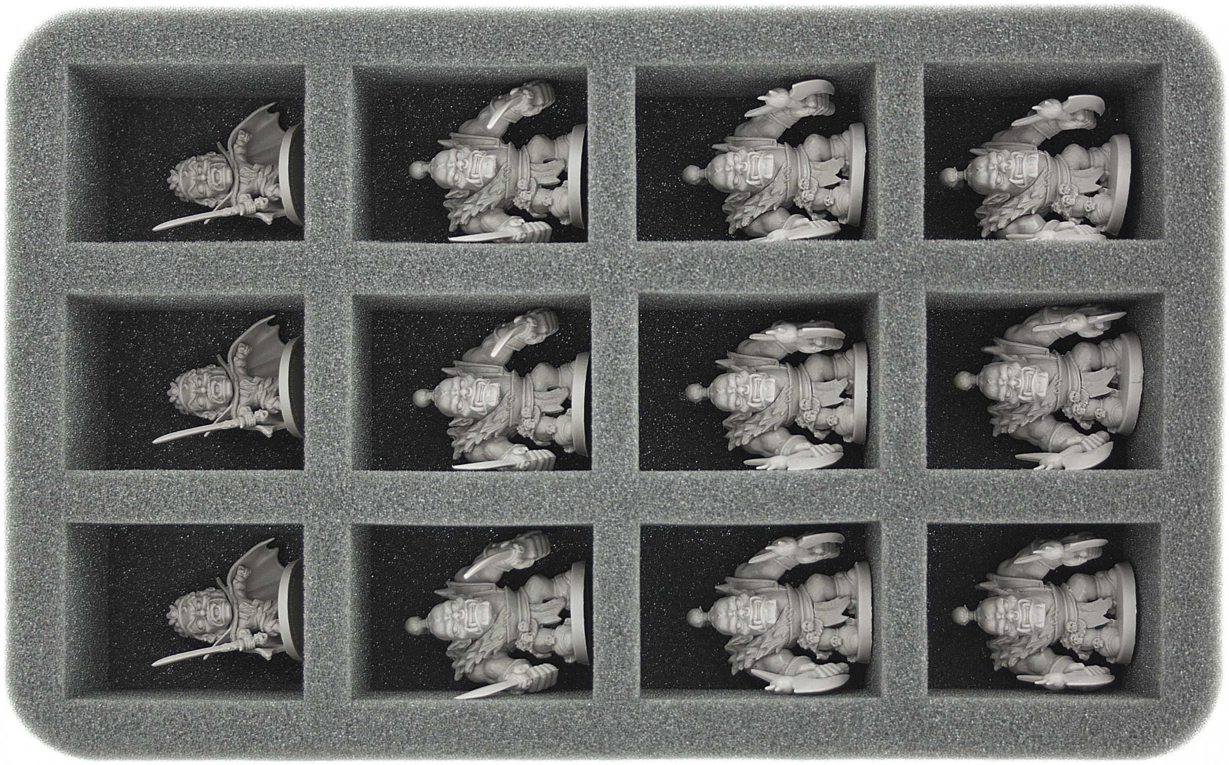 Bandeja especial de espuma de 50 mm para 12 figuras de Super Dungeon Explore.