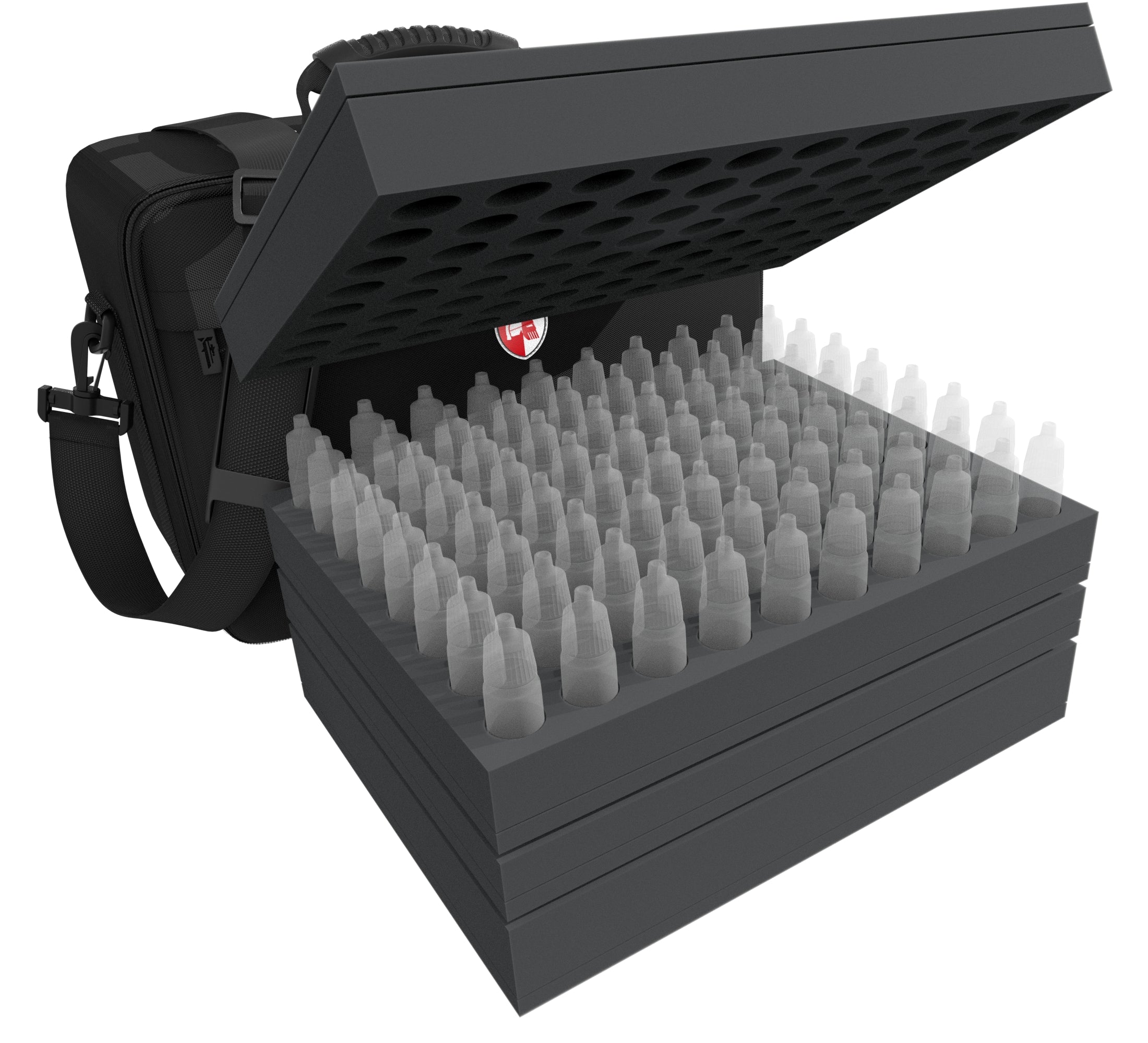 Aquí se pueden almacenar hasta 80 modelos de botellas de color de una forma claramente dispuesta y transportable. Gracias a su material ligero, la inserción de espuma es un maravilloso complemento para su bolsa de hobby.