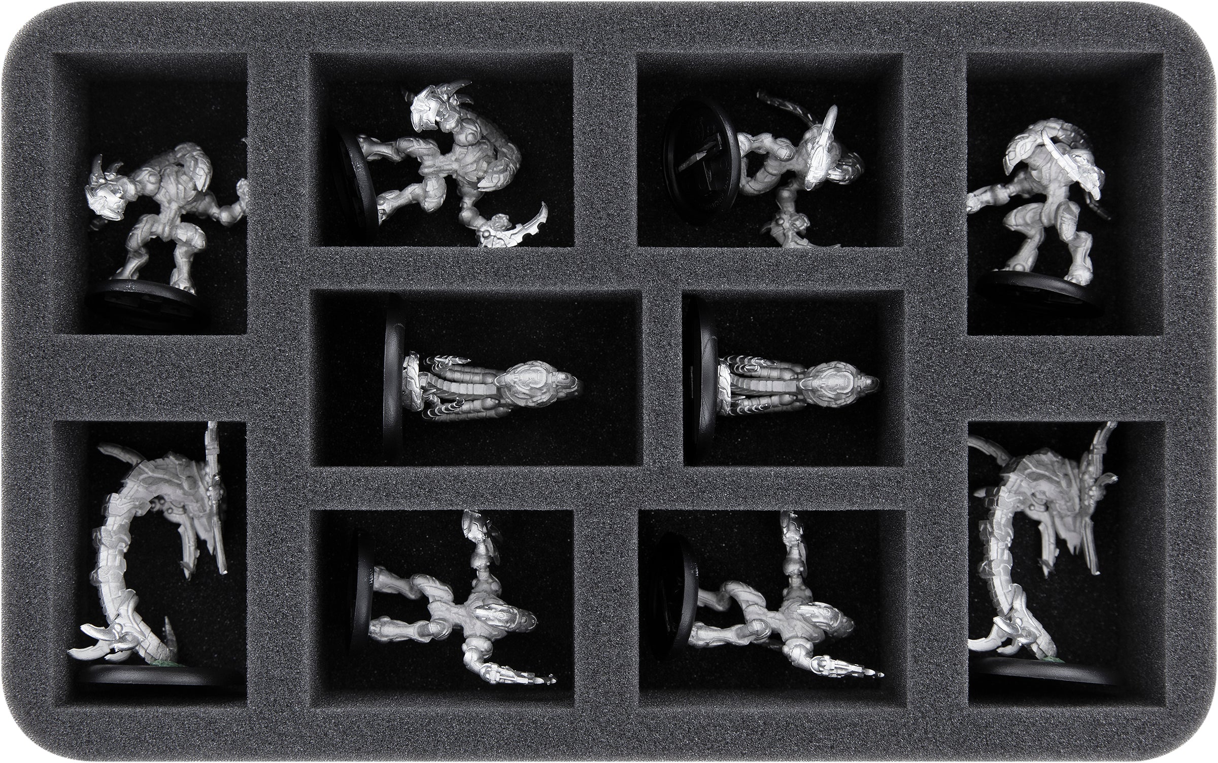 - 1 bandeja de espuma Half-Size con 10 compartimentos para miniaturas en solitario y de escuadra (HSLM050BO)