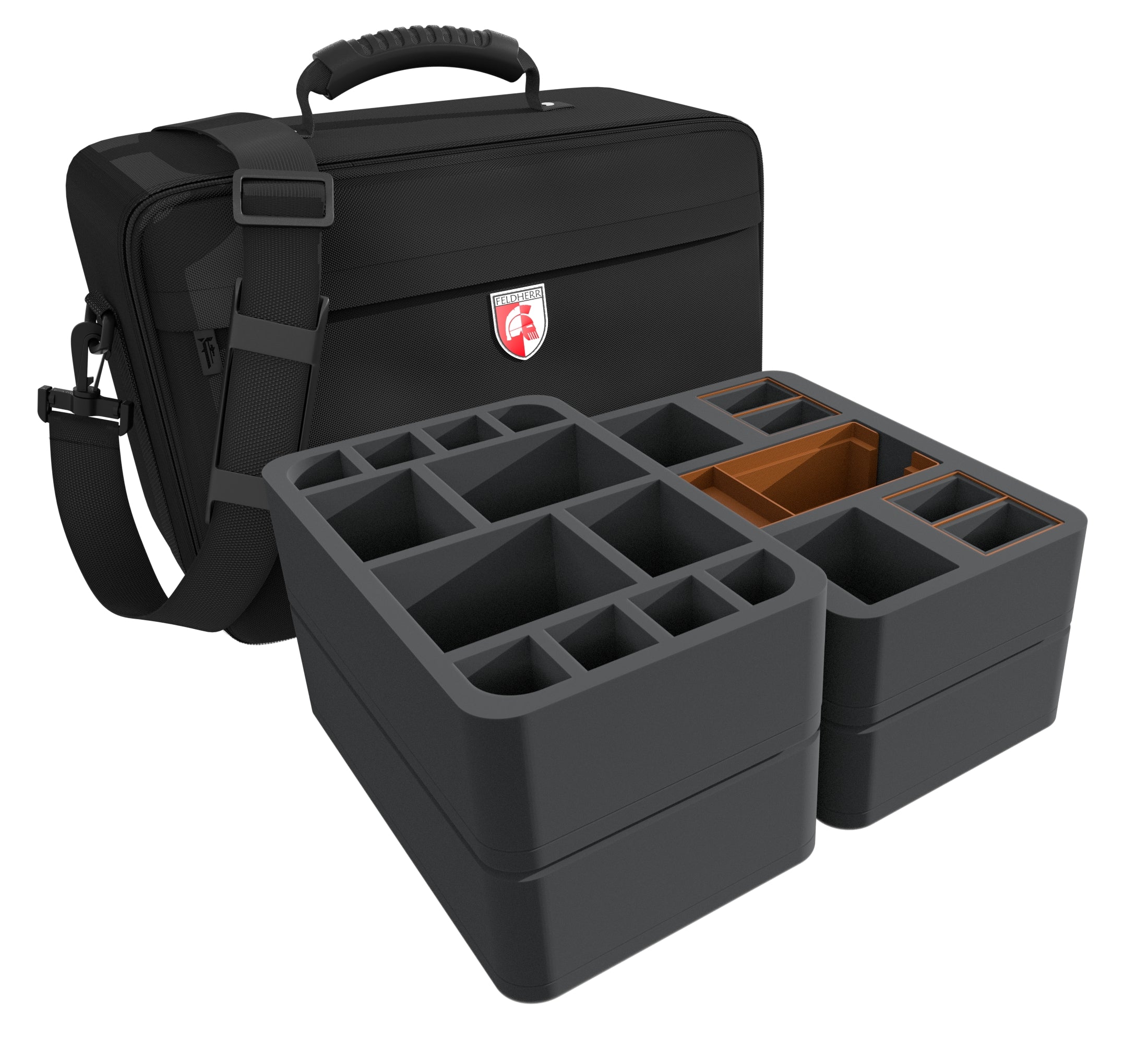 Las expansiones contienen mucho material de juego. Te ayudamos con un MAXI bolsa adecuado con inserciones Feldherr personalizadas espuma para que tu material de juego llegue intacto a la siguiente noche de juego. Así, cada carta y cada ficha tiene su compartimento correspondiente. Y, por supuesto, también hay espacio para las figuras disponibles opcionalmente.