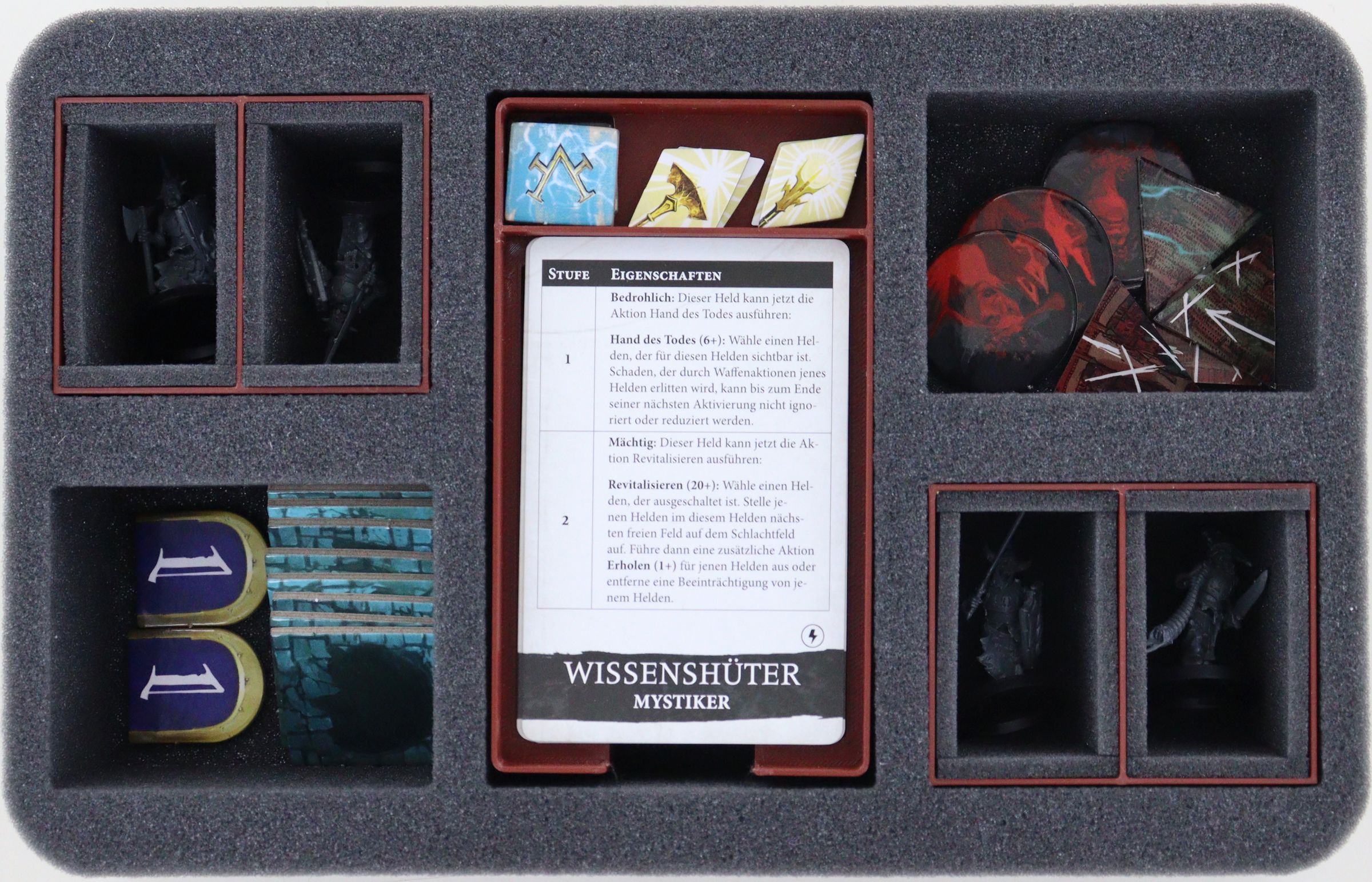 Gracias al corte a medida, los miniaturas tienen un asiento firme y no pierden agarre cuando se transportan por la Ciudad Maldita de Ulfenkarn. Si has pintado tus modelos, el suave espuma protege los colores de tus modelos de la abrasión y los feos arañazos.