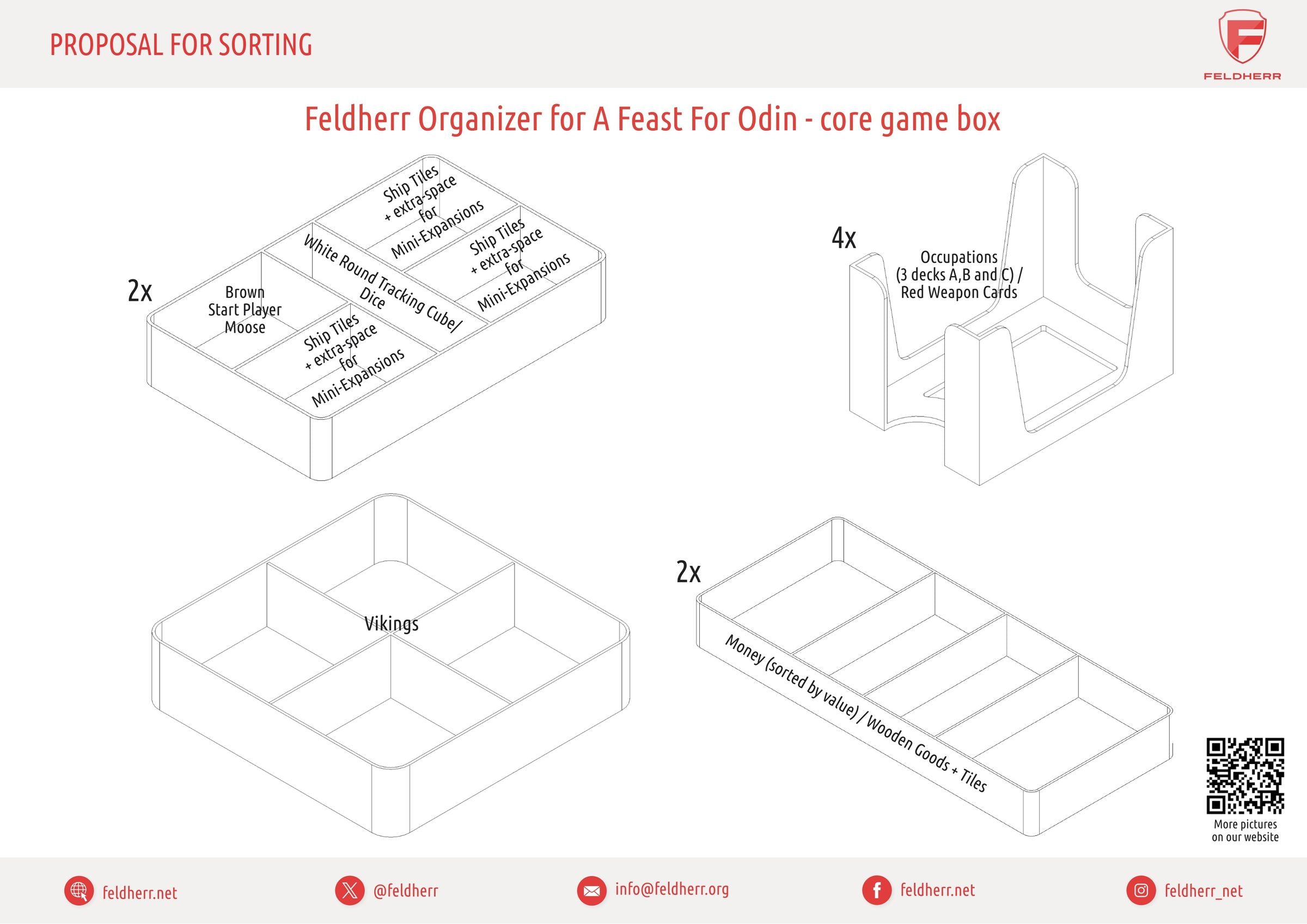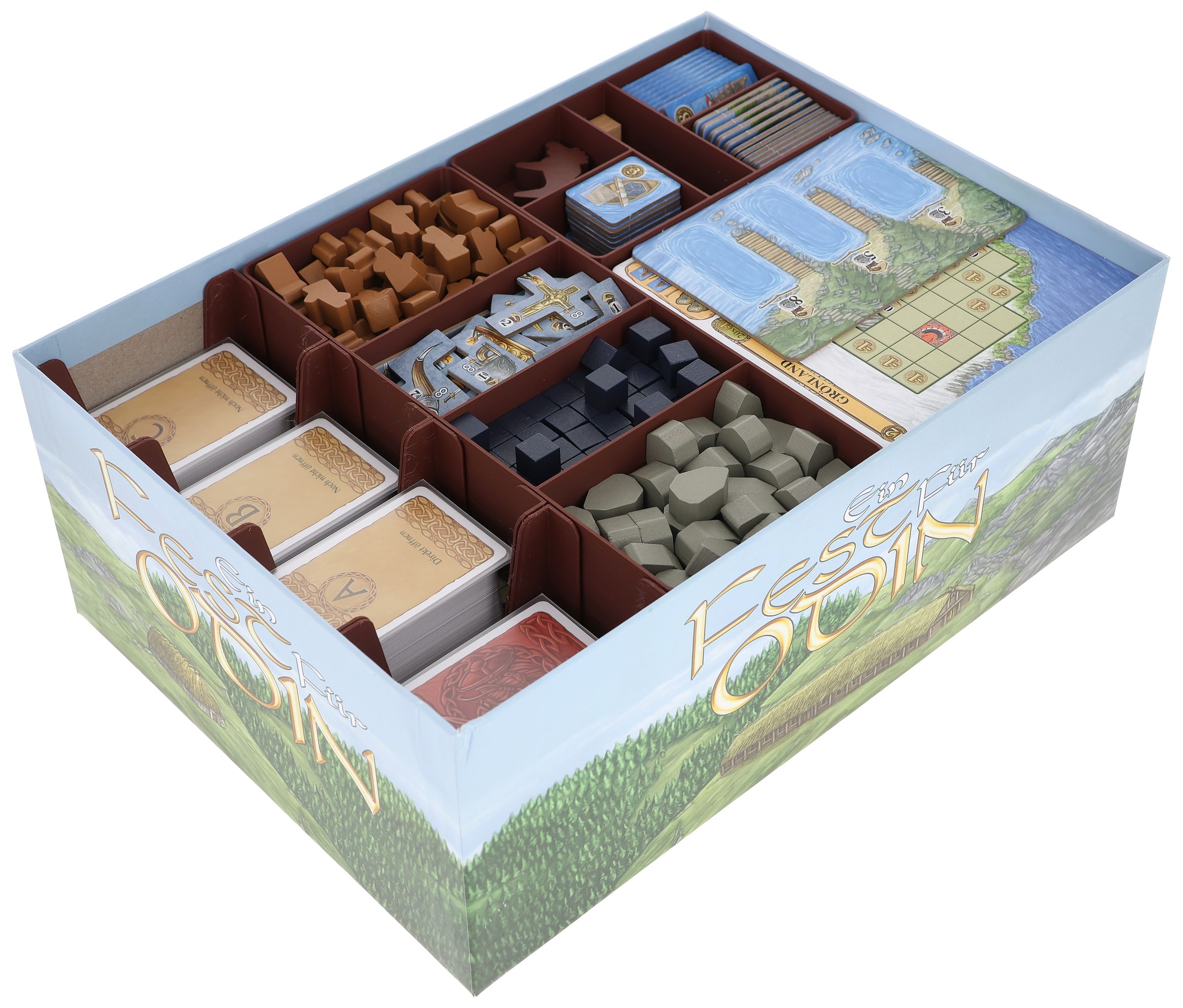 Para que puedas hacer lo que hacen los vikingos, es decir, saquear, robar y conquistar, nos ocupamos del orden en la caja y en la mesa de juego con este práctico Organizador Feldherr para Un festín para Odín.