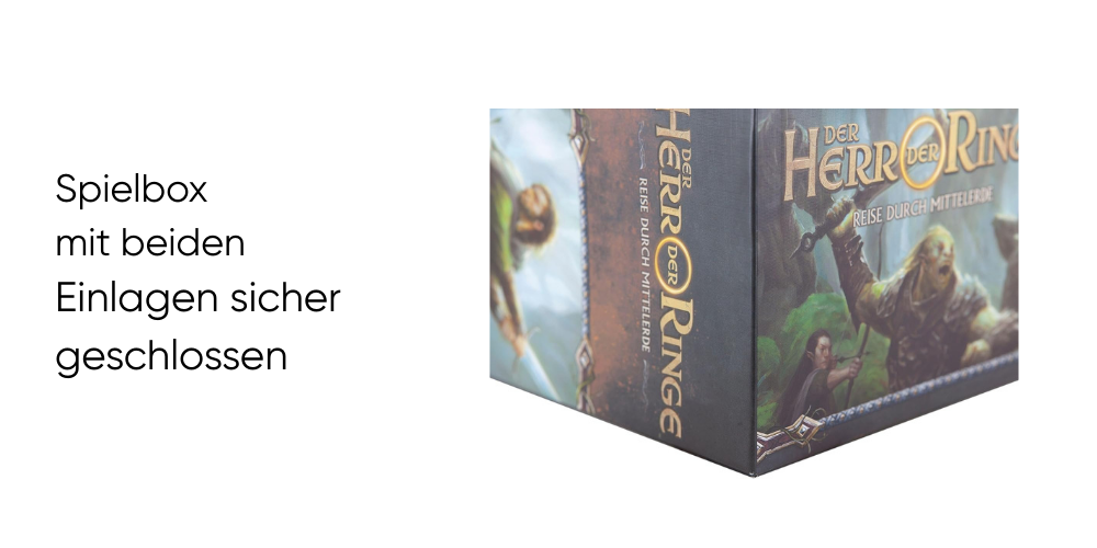- El juego encaja exactamente en la caja original del juego de mesa del"Señor de los Anillos": Viajes por la Tierra Media', juego central de FFG.