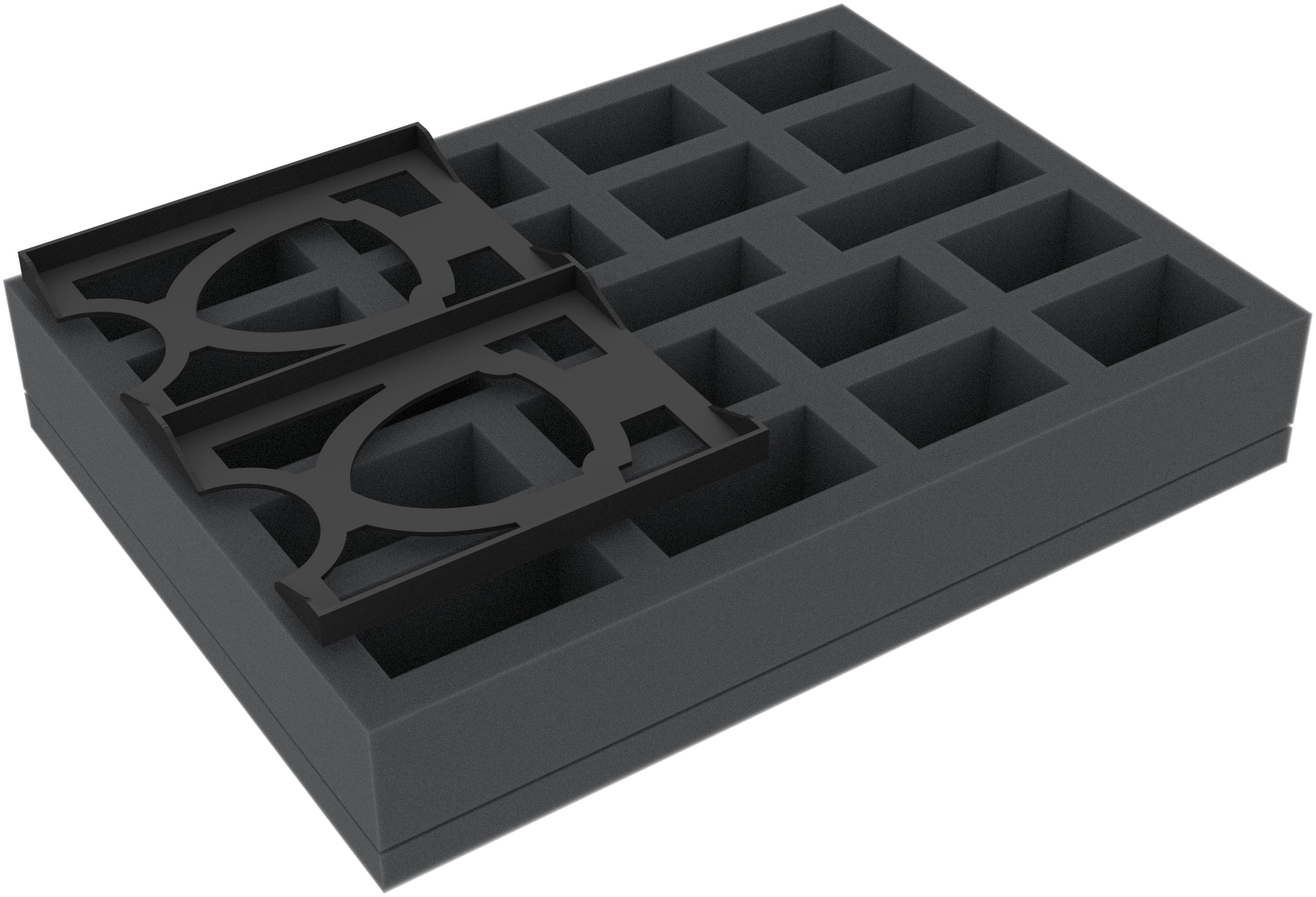 - 1 bandeja de espuma Feldherr para 16 miniaturas, 2 puertas y una ficha de tamaño pequeño