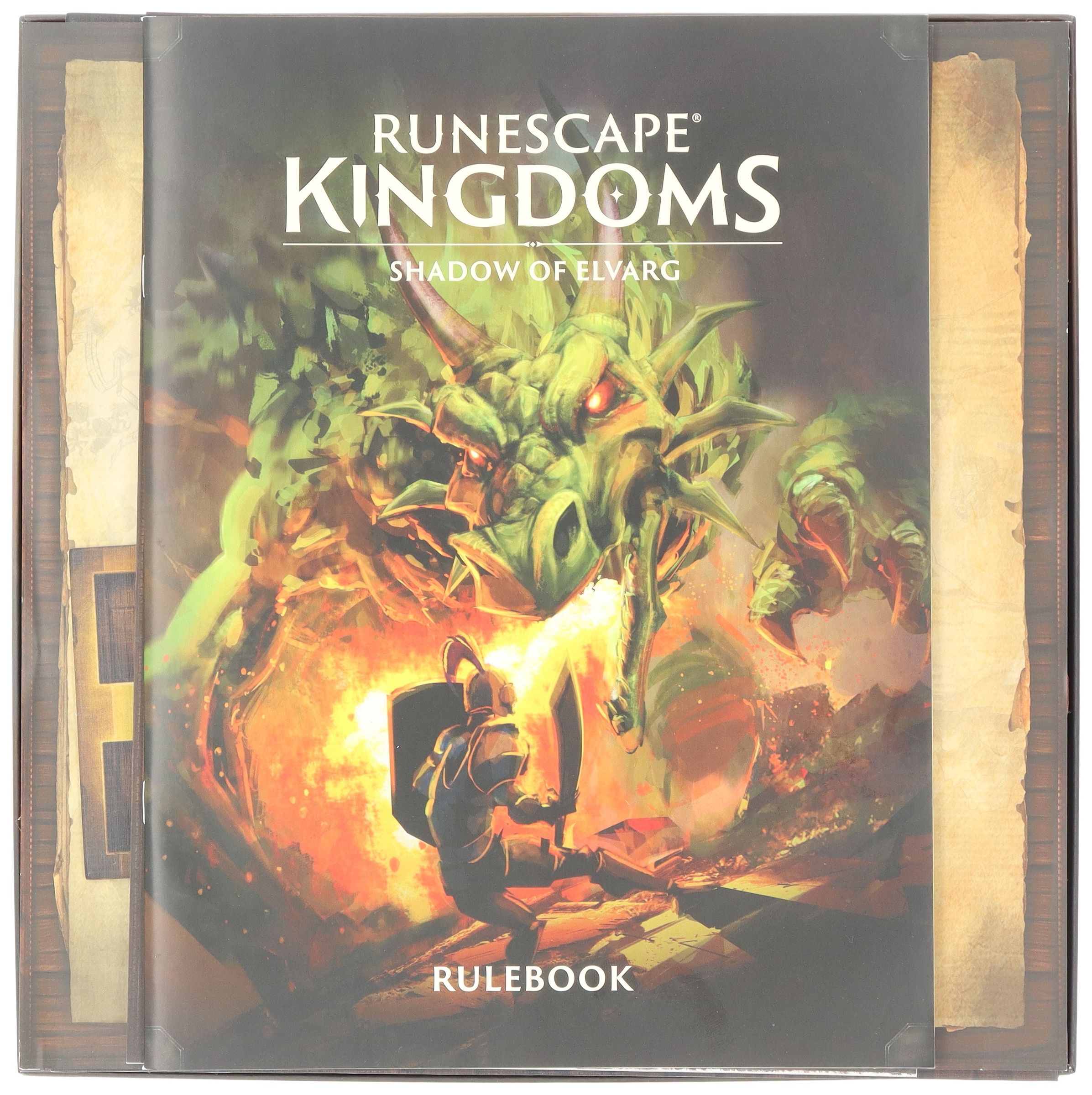 - El juego encaja perfectamente en la caja original de Runescape Kingdoms: Shadow of Elvarg (dimensiones del set: 285 x 285 x 95 mm).