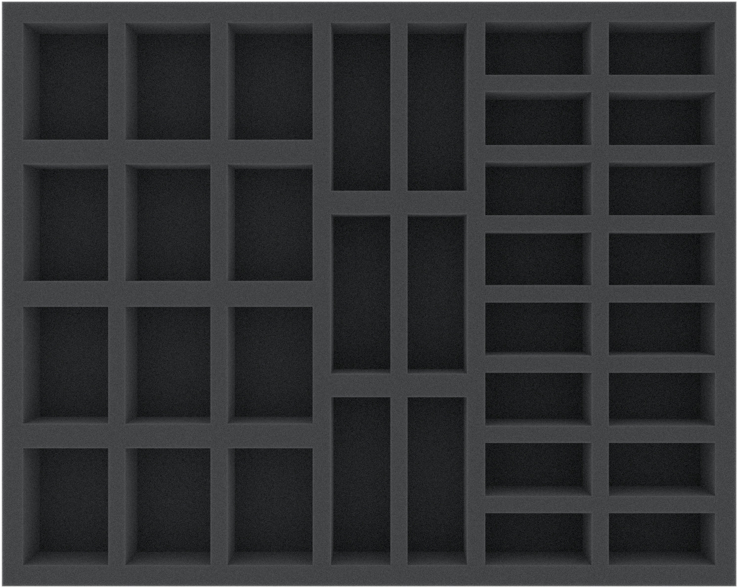 Hasta 34 miniaturas estándar de tu ejército de Hedonitas de Slaanesh encontrarán un lugar seguro en esta bandeja de espuma Full-Size. Los 34 compartimentos de diferentes tamaños son ideales para almacenar y transportar las Daemonettes de Slaanesh.