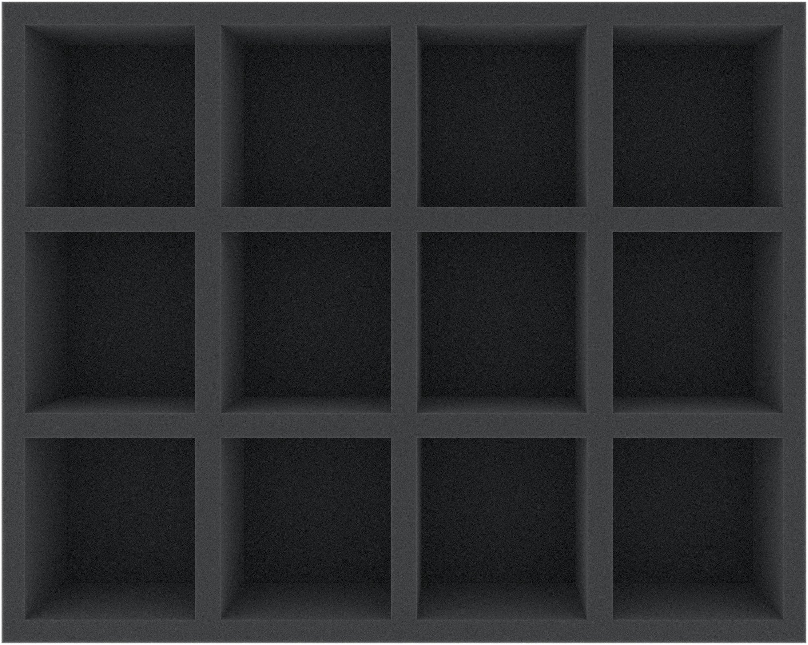 Esta bandeja de espuma Full-Size está dividida en 12 compartimentos. La esterilla es ideal para el almacenamiento seguro y claro de miniaturas más grandes y para material de juego.