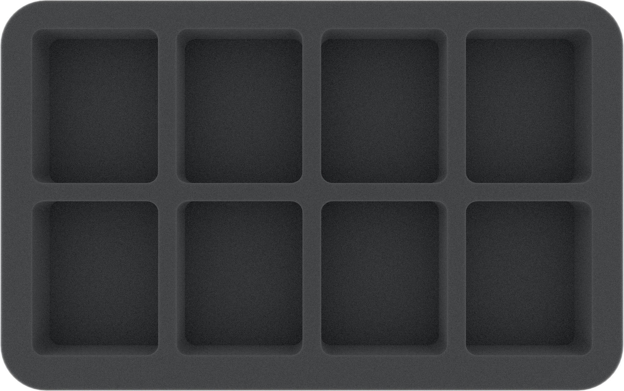 En este Feldherr bandeja de espuma tienes espacio para hasta 8 miniaturas de tu ejército. Por ejemplo, el inserto es especialmente adecuado para guardar minis estándar sin figuras voluminosas.