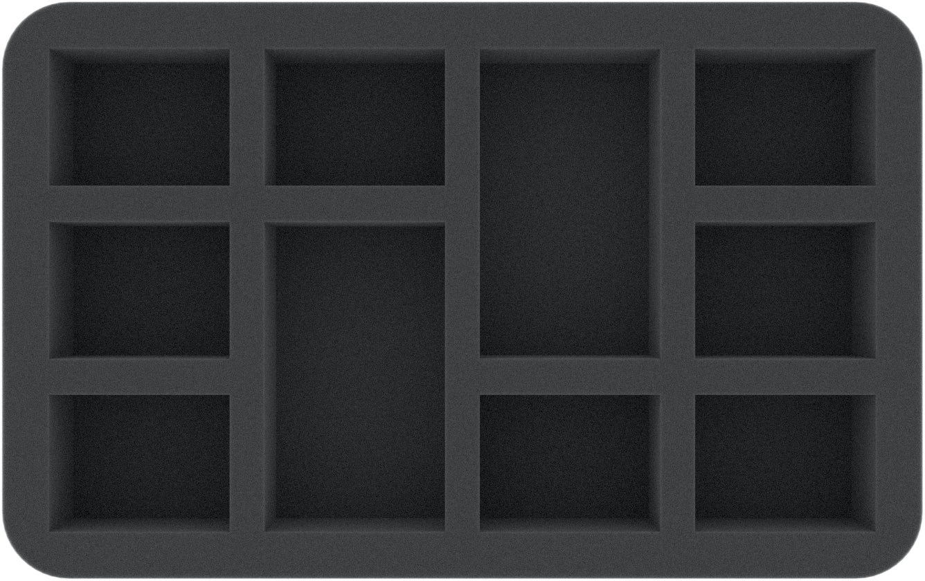 Esta bandeja de espuma Half-Size está dividida en 10 compartimentos. Es particularmente adecuado para almacenar miniaturas de cajas de unidades, como'Stark Heroes I'.