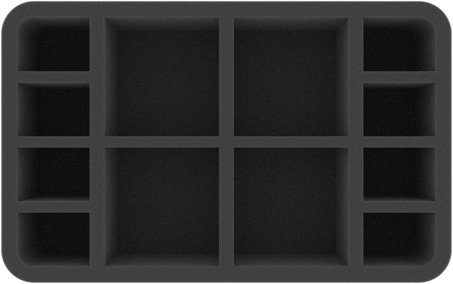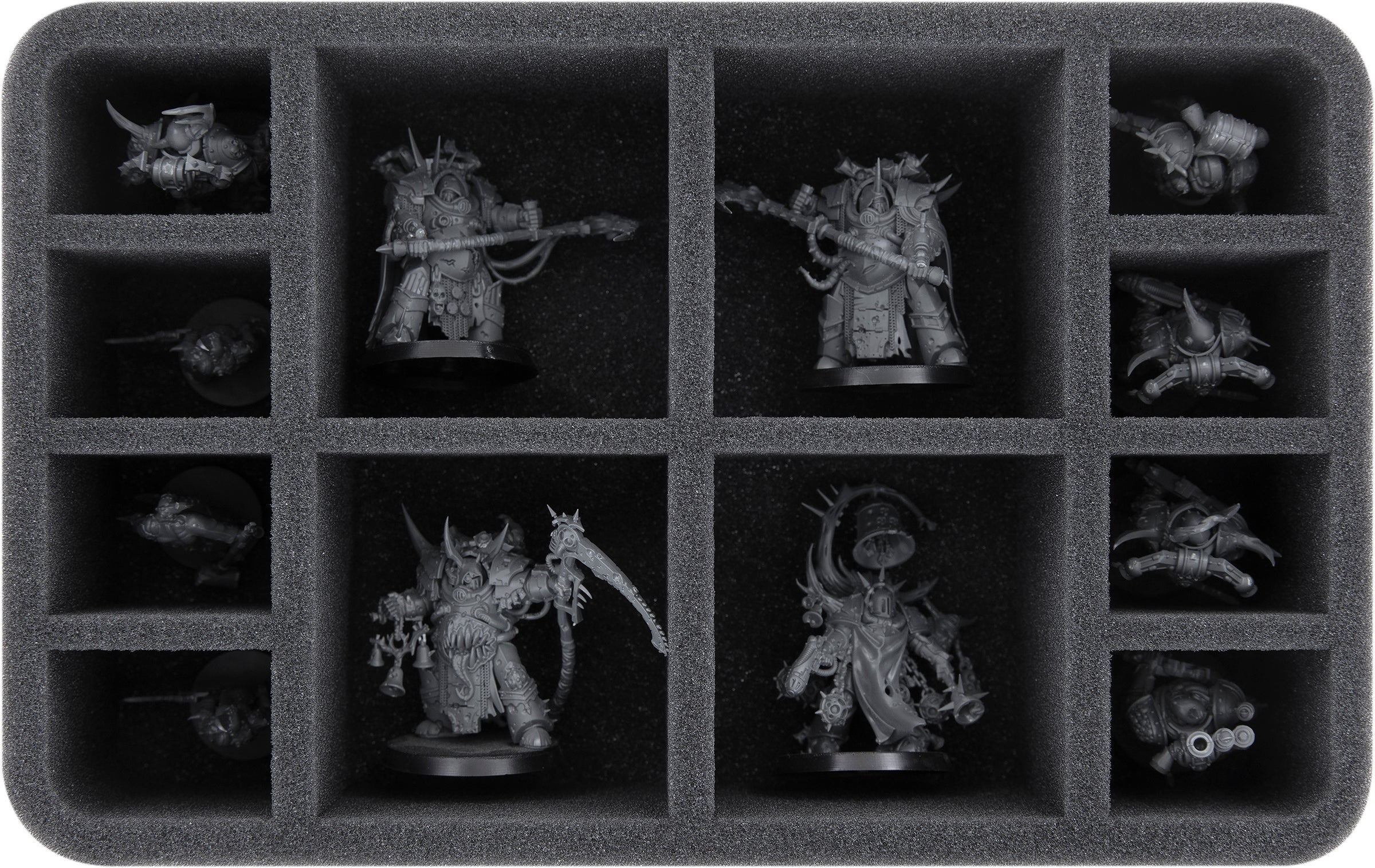 En esta bandeja de espuma Feldherr tienes espacio para hasta 12 miniaturas de tu ejército. El inserto es especialmente adecuado para Deathshroud Bodyguard, Blightlord Terminators, Plague Marines y modelos de tamaño similar.