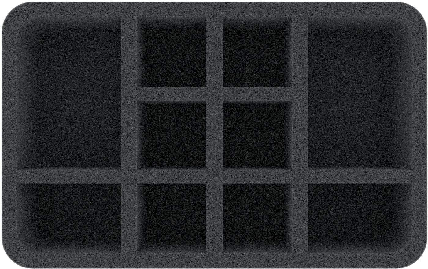 En esta bandeja de espuma Feldherr tienes espacio para hasta 10 miniaturas de tu ejército. El inserto es especialmente adecuado para Broodlord, Termagant Brood, Hormagaunt Brood y modelos de tamaño similar.