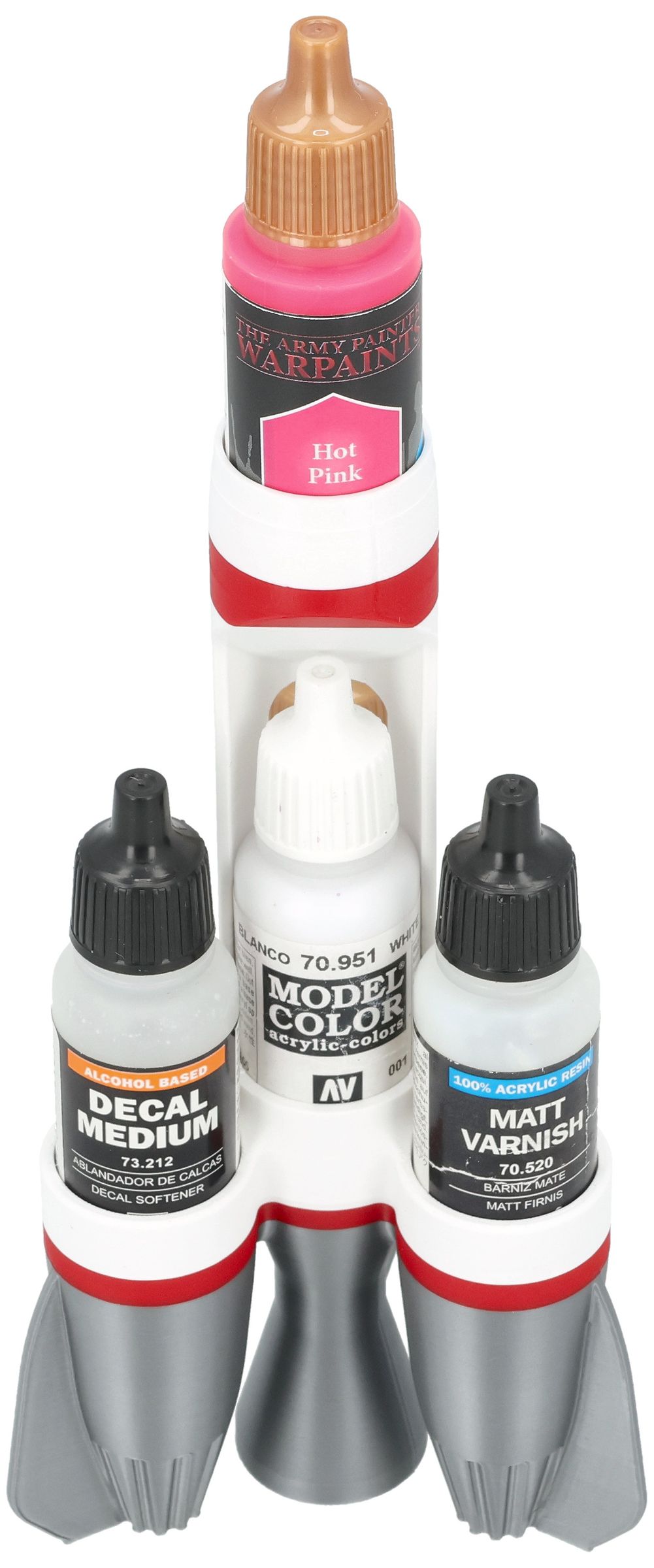 Una solución de almacenamiento compacta y divertida para organizar hasta cinco botes de pintura Vallejo, ideal para mantener sus pinturas para miniaturas y maquetas ordenadas y siempre al alcance de la mano en su escritorio de hobby.